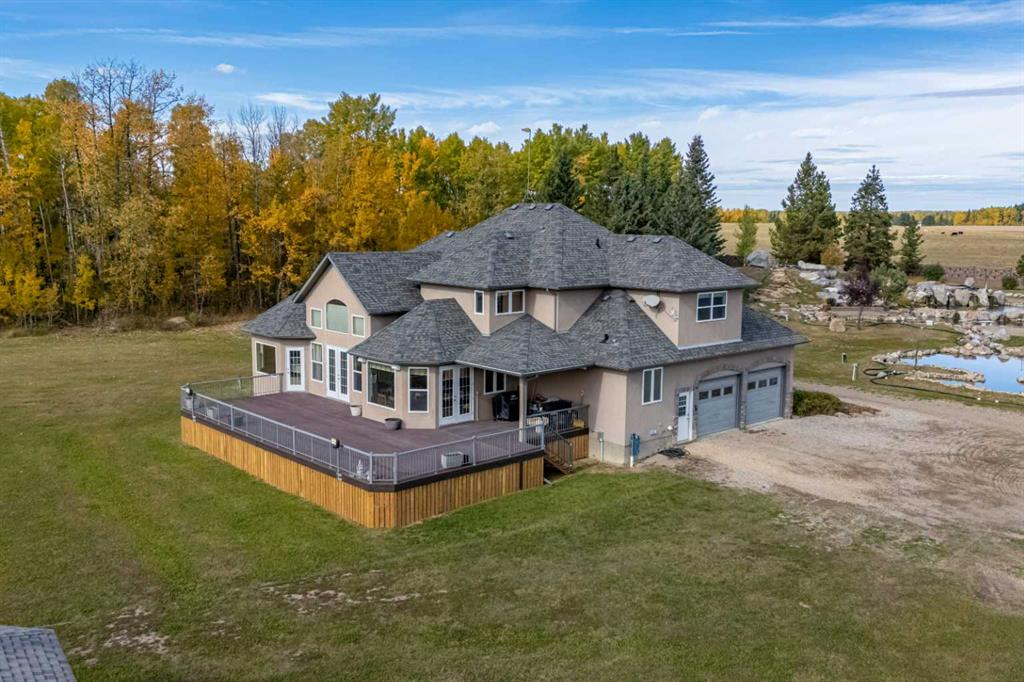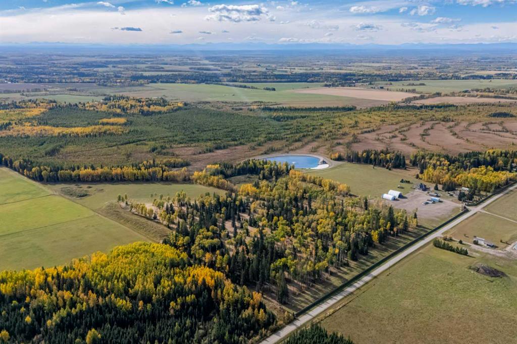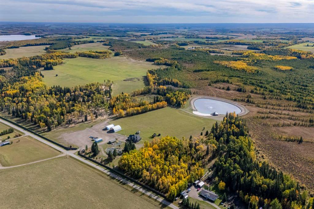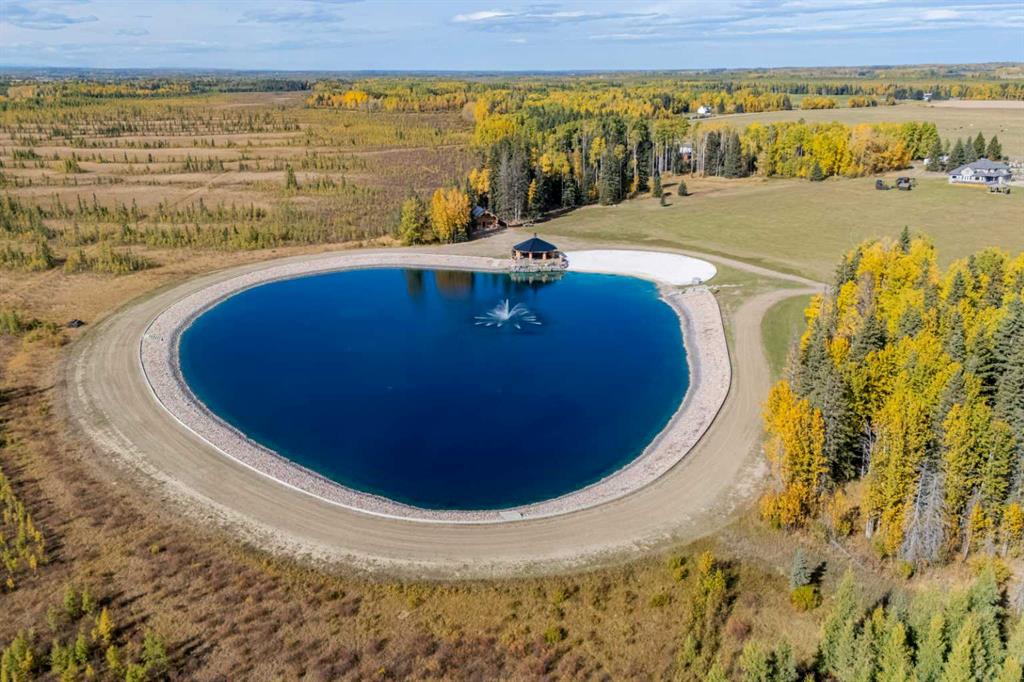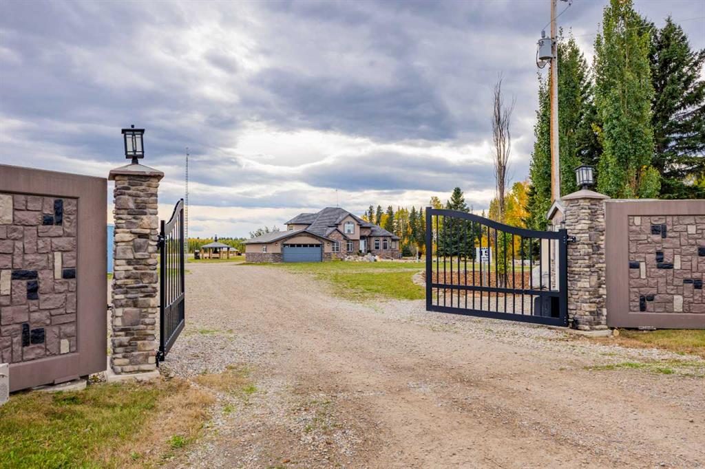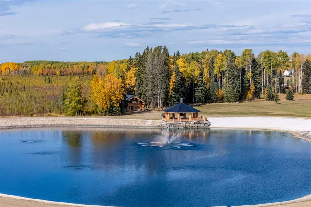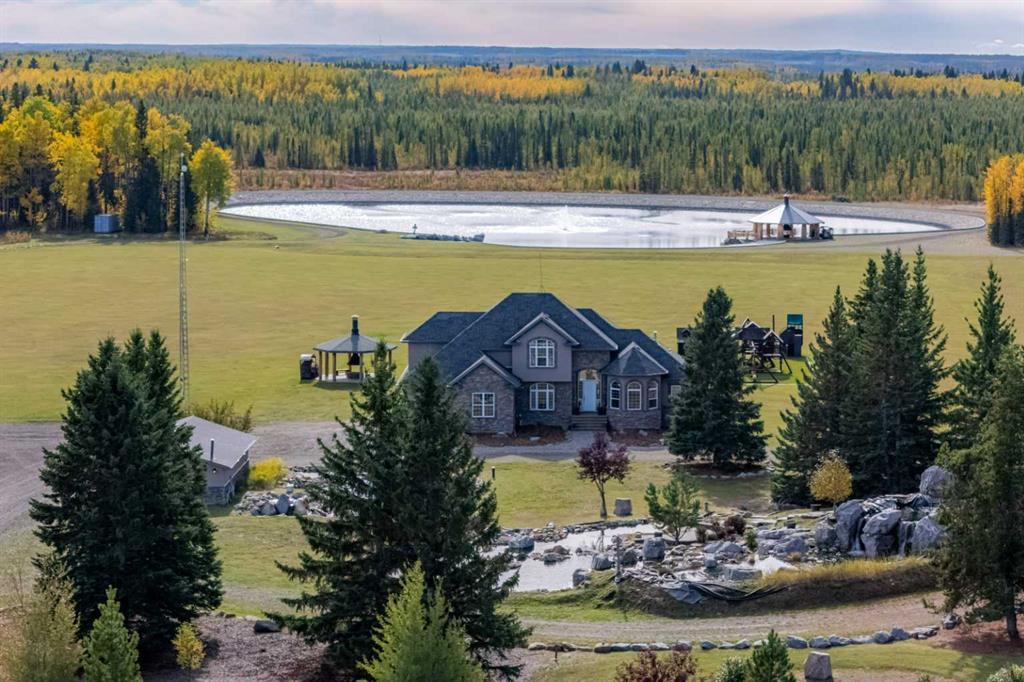 Welcome to Rocky Mountain House Retreat, where adventure awaits and possibilities are infinite. This spectacular estate encompasses all that western living has to offer, with truly unique and breathtaking amenities. Approach the property greeted by the regal stamped concrete fence and iron gate which sets the tone as an impressive entryway to the 160 awe inspiring acres held behind it. The soft babble of the front yard water feature, along with expansive views of the surrounding rolling hills, wooded areas, and personal lake greets visitors as they approach the primary residence. Over 5,500 Sq.Ft. of living space plays host to a functional living space suitable for families of any size. Enter the main floor living area greeted by soaring ceilings and large windows which deliver long views of the property and an abundance of natural light. Take in the incredible scenery of the Rocky Mountains within the main floor primary bedroom, and enjoy ample living space hosting a large walk in closet, and a spa-like five piece ensuite with a beautiful glass shower, and jetted soaker tub. Gather in the spacious kitchen featuring stainless steel appliances, sub-zero fridge, along with a surplus of counter space for prep and cabinetry for storage. Perfectly designed for hosting guests, a dining area in the kitchen along with an additional formal dining space provides an abundance of space to do so. Step directly out of the home through glass doors from both the living room and kitchen onto the expansive composite rear deck and enjoy breathtaking views from every angle. Emerge through the staircase to the lower level greeted by the pinnacle of entertainment spaces. The sumptuous wet bar serves as the anchor for this space encompassed by a billiards table, gaming area, and the perfect nook for a poker table or additional seating. Take in a movie or watch the game in the impressive theatre room complete with built-in sound, and projector system. The basement is complete with a wine cellar for the discerning sommelier, ample storage, and an additional bedroom perfect for guests. The top floor provides an additional three bedrooms along with a five piece bathroom, a perfect space for the kids. Walk across the manicured lawn and revel in all that the 160 acres of this pristine property has to offer, centred around the magnificent spring fed 6 acre lake. Enjoy swimming, paddle boarding, or laying out on the white sand beach during the summer months. Aptly stocked with 4,500 Rainbow and Brook Trout which roam the crystal clear waters year round. Lakeside, the ultimate guest house awaits. The gorgeous log structure hosts an additional 1073 Sq.Ft. of living space, and provides the utmost of charm and coziness. Two magnificent log gazebos protrude from the land with steel fire pits and chimneys, serving as incredible places to connect and gather around a fire with friends and family alike. Take advantage of the limitless opportunities of owning this truly one of a kind personal oasis.