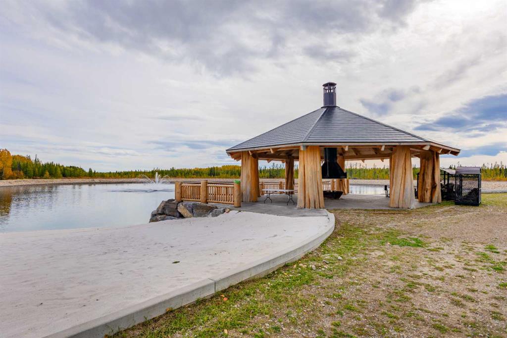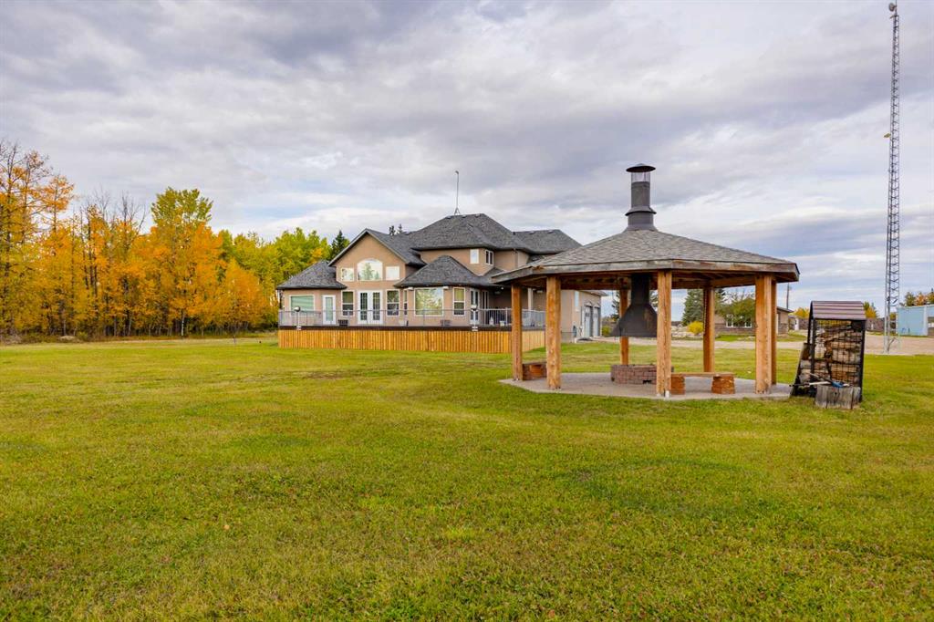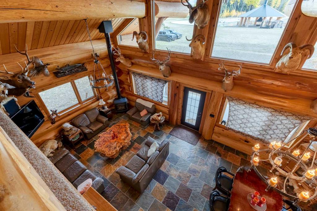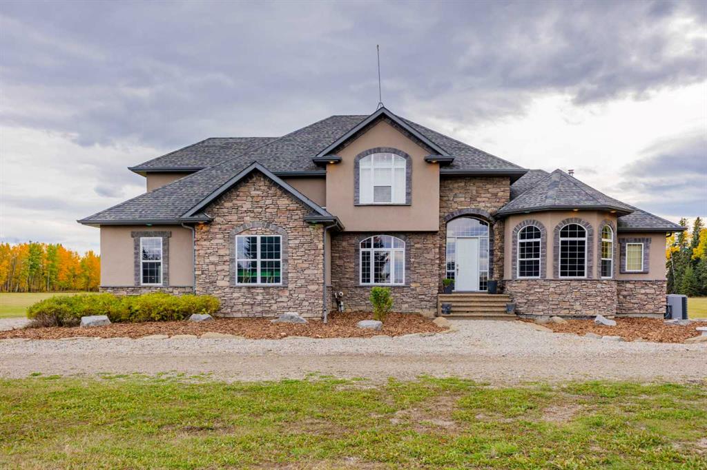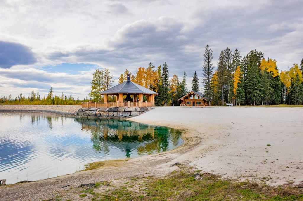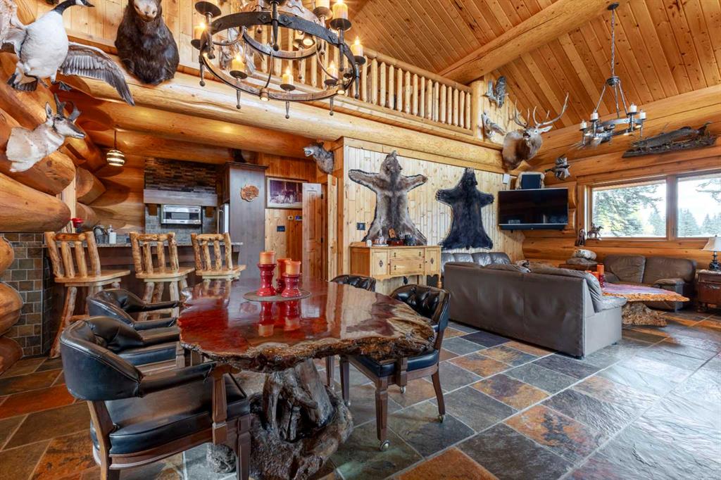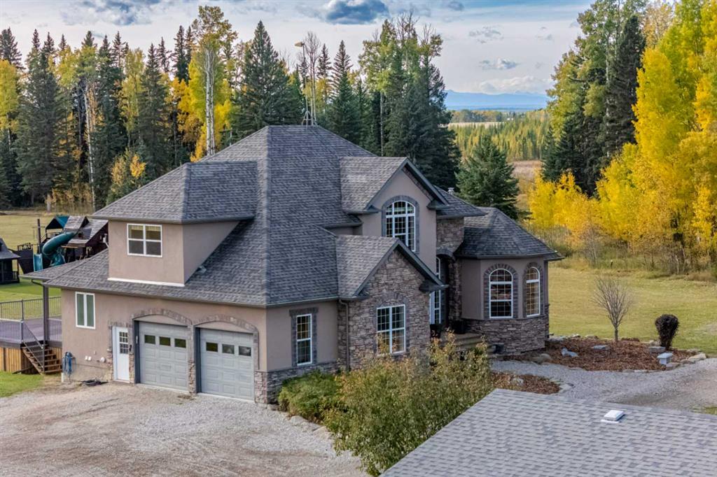 Welcome to Rocky Mountain House Retreat, where adventure awaits and possibilities are infinite. This spectacular estate encompasses all that western living has to offer, with truly unique and breathtaking amenities. Approach the property greeted by the regal stamped concrete fence and iron gate which sets the tone as an impressive entryway to the 160 awe inspiring acres held behind it. The soft babble of the front yard water feature, along with expansive views of the surrounding rolling hills, wooded areas, and personal lake greets visitors as they approach the primary residence. Over 5,500 Sq.Ft. of living space plays host to a functional living space suitable for families of any size. Enter the main floor living area greeted by soaring ceilings and large windows which deliver long views of the property and an abundance of natural light. Take in the incredible scenery of the Rocky Mountains within the main floor primary bedroom, and enjoy ample living space hosting a large walk in closet, and a spa-like five piece ensuite with a beautiful glass shower, and jetted soaker tub. Gather in the spacious kitchen featuring stainless steel appliances, sub-zero fridge, along with a surplus of counter space for prep and cabinetry for storage. Perfectly designed for hosting guests, a dining area in the kitchen along with an additional formal dining space provides an abundance of space to do so. Step directly out of the home through glass doors from both the living room and kitchen onto the expansive composite rear deck and enjoy breathtaking views from every angle. Emerge through the staircase to the lower level greeted by the pinnacle of entertainment spaces. The sumptuous wet bar serves as the anchor for this space encompassed by a billiards table, gaming area, and the perfect nook for a poker table or additional seating. Take in a movie or watch the game in the impressive theatre room complete with built-in sound, and projector system. The basement is complete with a wine cellar for the discerning sommelier, ample storage, and an additional bedroom perfect for guests. The top floor provides an additional three bedrooms along with a five piece bathroom, a perfect space for the kids. Walk across the manicured lawn and revel in all that the 160 acres of this pristine property has to offer, centred around the magnificent spring fed 6 acre lake. Enjoy swimming, paddle boarding, or laying out on the white sand beach during the summer months. Aptly stocked with 4,500 Rainbow and Brook Trout which roam the crystal clear waters year round. Lakeside, the ultimate guest house awaits. The gorgeous log structure hosts an additional 1073 Sq.Ft. of living space, and provides the utmost of charm and coziness. Two magnificent log gazebos protrude from the land with steel fire pits and chimneys, serving as incredible places to connect and gather around a fire with friends and family alike. Take advantage of the limitless opportunities of owning this truly one of a kind personal oasis.