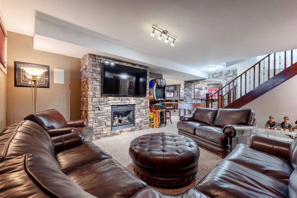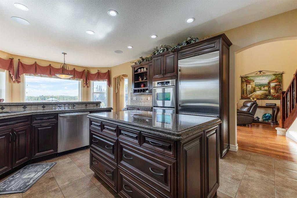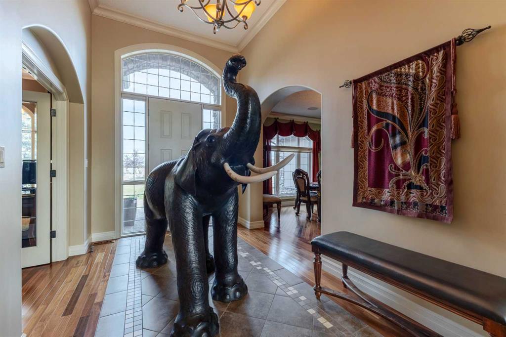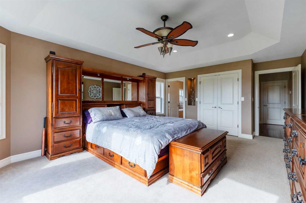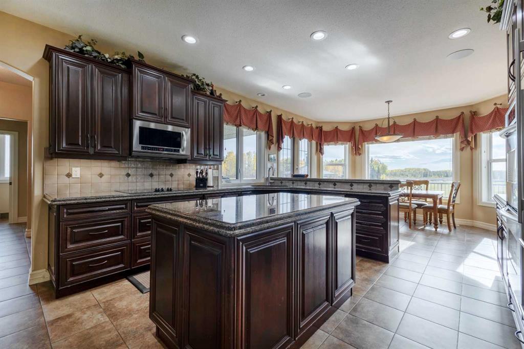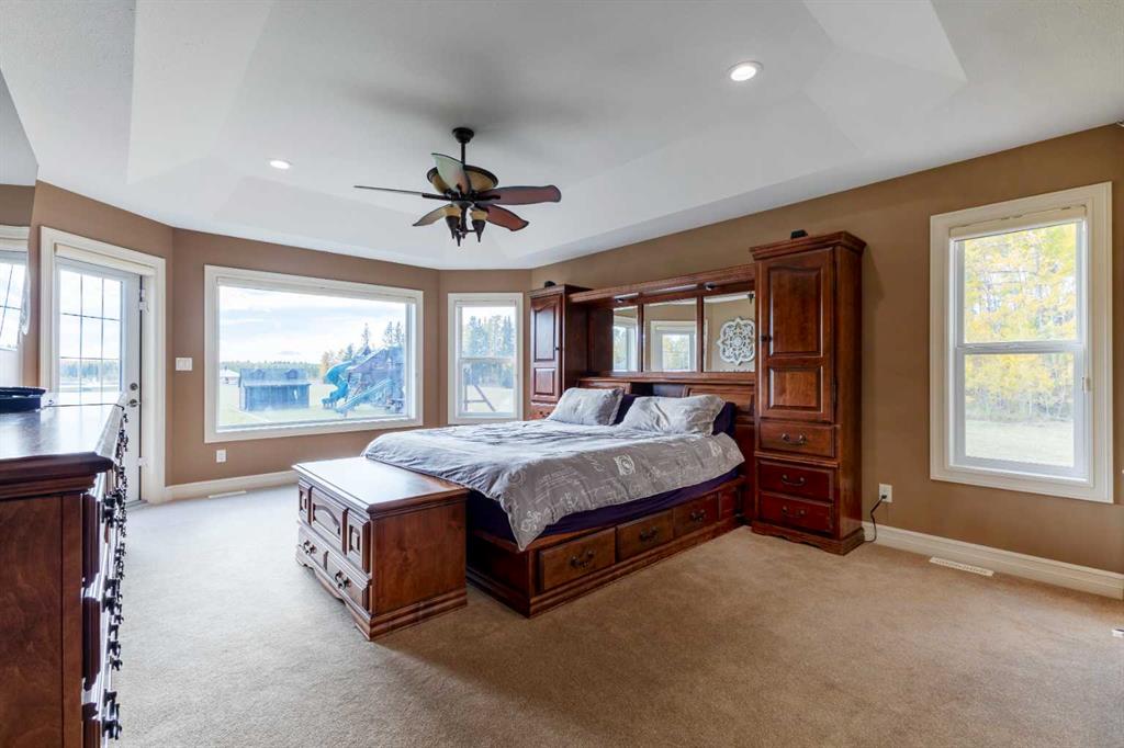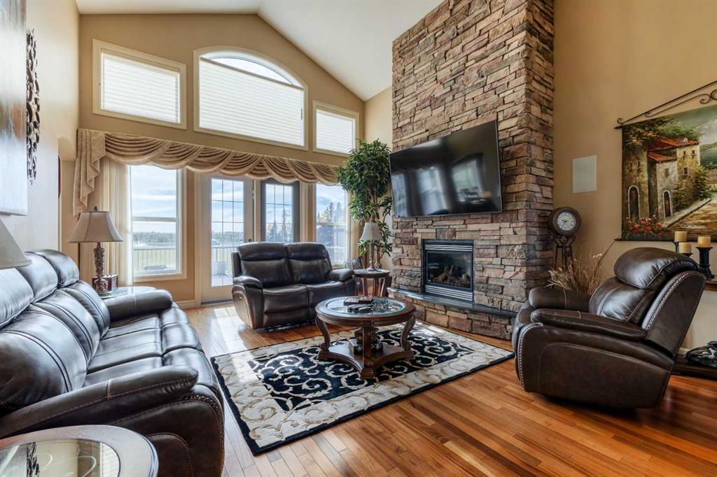 Welcome to Rocky Mountain House Retreat, where adventure awaits and possibilities are infinite. This spectacular estate encompasses all that western living has to offer, with truly unique and breathtaking amenities. Approach the property greeted by the regal stamped concrete fence and iron gate which sets the tone as an impressive entryway to the 160 awe inspiring acres held behind it. The soft babble of the front yard water feature, along with expansive views of the surrounding rolling hills, wooded areas, and personal lake greets visitors as they approach the primary residence. Over 5,500 Sq.Ft. of living space plays host to a functional living space suitable for families of any size. Enter the main floor living area greeted by soaring ceilings and large windows which deliver long views of the property and an abundance of natural light. Take in the incredible scenery of the Rocky Mountains within the main floor primary bedroom, and enjoy ample living space hosting a large walk in closet, and a spa-like five piece ensuite with a beautiful glass shower, and jetted soaker tub. Gather in the spacious kitchen featuring stainless steel appliances, sub-zero fridge, along with a surplus of counter space for prep and cabinetry for storage. Perfectly designed for hosting guests, a dining area in the kitchen along with an additional formal dining space provides an abundance of space to do so. Step directly out of the home through glass doors from both the living room and kitchen onto the expansive composite rear deck and enjoy breathtaking views from every angle. Emerge through the staircase to the lower level greeted by the pinnacle of entertainment spaces. The sumptuous wet bar serves as the anchor for this space encompassed by a billiards table, gaming area, and the perfect nook for a poker table or additional seating. Take in a movie or watch the game in the impressive theatre room complete with built-in sound, and projector system. The basement is complete with a wine cellar for the discerning sommelier, ample storage, and an additional bedroom perfect for guests. The top floor provides an additional three bedrooms along with a five piece bathroom, a perfect space for the kids. Walk across the manicured lawn and revel in all that the 160 acres of this pristine property has to offer, centred around the magnificent spring fed 6 acre lake. Enjoy swimming, paddle boarding, or laying out on the white sand beach during the summer months. Aptly stocked with 4,500 Rainbow and Brook Trout which roam the crystal clear waters year round. Lakeside, the ultimate guest house awaits. The gorgeous log structure hosts an additional 1073 Sq.Ft. of living space, and provides the utmost of charm and coziness. Two magnificent log gazebos protrude from the land with steel fire pits and chimneys, serving as incredible places to connect and gather around a fire with friends and family alike. Take advantage of the limitless opportunities of owning this truly one of a kind personal oasis.
