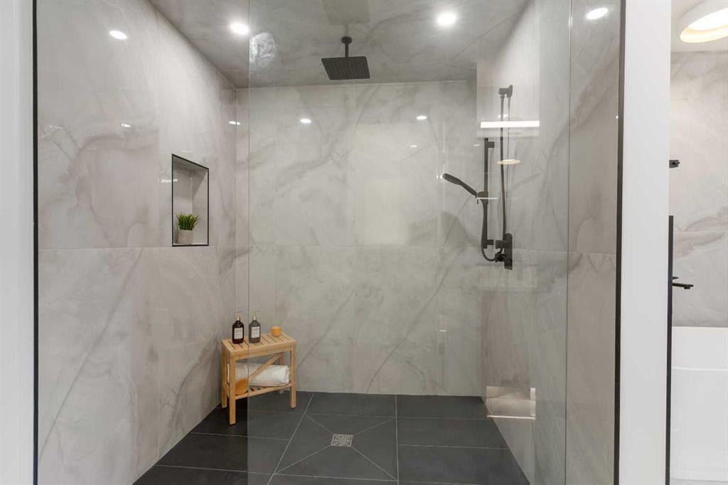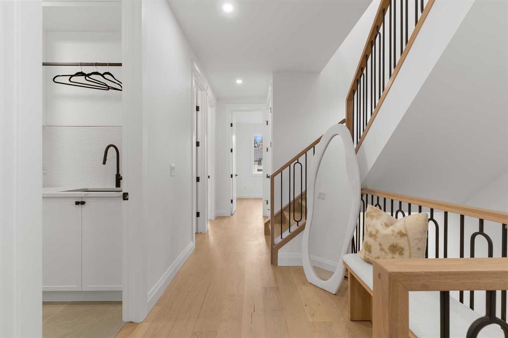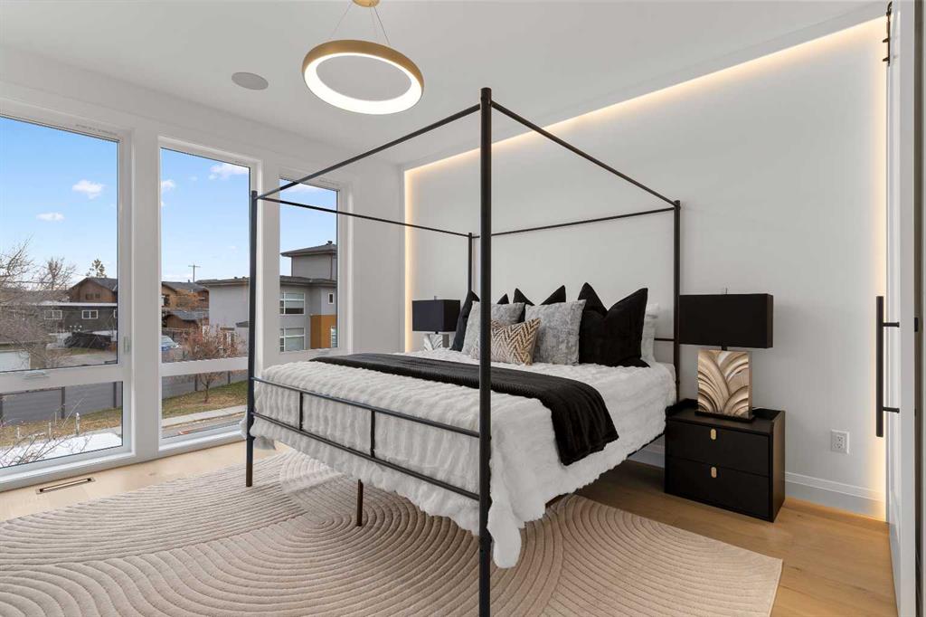 Construction Now Completed!! ~ Situated just steps from the river in Parkdale, one of Calgary’s most desirable central communities, this striking modern residence offers 2700 sq ft of masterfully designed living space across the three upper levels, with another 891 sq ft below grade. The main floor welcomes you (under flat painted ceilings on all levels) with a spacious dining area off the entry; flowing seamlessly into a designer kitchen, featuring a showstopping 10 foot quartz island and sleek modern finishes. At the rear of the main, a bright and airy living room with a contemporary gas fireplace opens with sliders to the west facing backyard expanding onto a large vinyl deck. A mudroom, tucked away powder room, and main floor office with a glass door, complete this gorgeous space. The second floor offers a true primary retreat with a massive ensuite featuring heated floors; a steam shower, and walk-in closet, alongside two additional bedrooms ~ each with their own walk-in closet ~ a full bathroom, and a well ~ appointed laundry area. The upper loft level is a standout feature; with a second primary bedroom, full ensuite (again with heated floors) and HUGE shower, dual walk-in closets, a versatile bonus area, and both front and rear balconies, offering stunning outdoor escapes. A fully legal basement suite (pending final approval by the city) adds even more flexibility, complete with two bedrooms, shared living area, and a full kitchen~ ideal for guests, rental income, or multigenerational living. With no shortage of bedrooms or closet space, this home is as functional as it is beautiful. Additional highlights include; a roughed-in security system, roughed-in air conditioning, a roughed-in vacuum system, exposed aggregate steps and sidewalks, full landscaping, and an unbeatable location. Surrounded by nature, amenities, parks, pathways, cafes, the Bow River, and everything inner-city Calgary has to offer, this is not one to miss!!