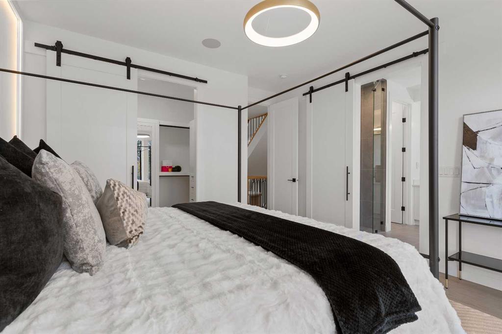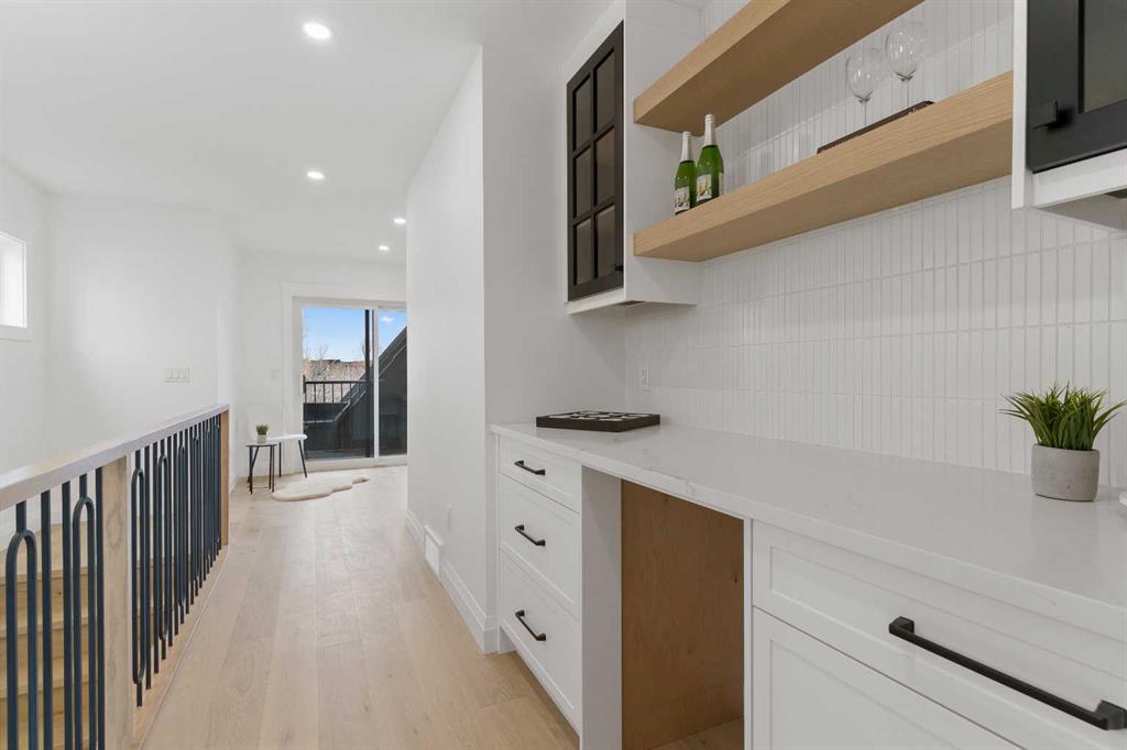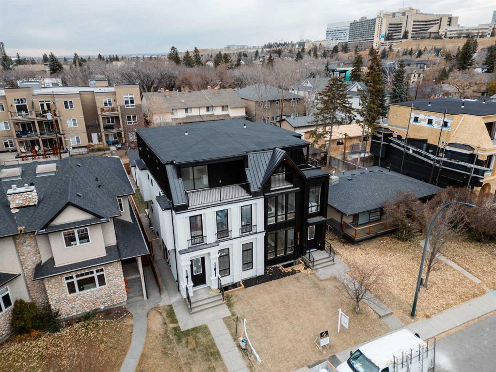 Construction Now Completed!! ~ Situated just steps from the river in Parkdale, one of Calgary’s most desirable central communities, this striking modern residence offers 2700 sq ft of masterfully designed living space across the three upper levels, with another 891 sq ft below grade. The main floor welcomes you (under flat painted ceilings on all levels) with a spacious dining area off the entry; flowing seamlessly into a designer kitchen, featuring a showstopping 10 foot quartz island and sleek modern finishes. At the rear of the main, a bright and airy living room with a contemporary gas fireplace opens with sliders to the west facing backyard expanding onto a large vinyl deck. A mudroom, tucked away powder room, and main floor office with a glass door, complete this gorgeous space. The second floor offers a true primary retreat with a massive ensuite featuring heated floors; a steam shower, and walk-in closet, alongside two additional bedrooms ~ each with their own walk-in closet ~ a full bathroom, and a well ~ appointed laundry area. The upper loft level is a standout feature; with a second primary bedroom, full ensuite (again with heated floors) and HUGE shower, dual walk-in closets, a versatile bonus area, and both front and rear balconies, offering stunning outdoor escapes. A fully legal basement suite (pending final approval by the city) adds even more flexibility, complete with two bedrooms, shared living area, and a full kitchen~ ideal for guests, rental income, or multigenerational living. With no shortage of bedrooms or closet space, this home is as functional as it is beautiful. Additional highlights include; a roughed-in security system, roughed-in air conditioning, a roughed-in vacuum system, exposed aggregate steps and sidewalks, full landscaping, and an unbeatable location. Surrounded by nature, amenities, parks, pathways, cafes, the Bow River, and everything inner-city Calgary has to offer, this is not one to miss!!
