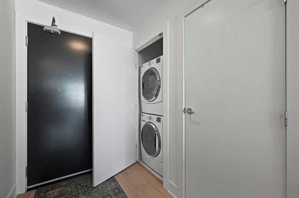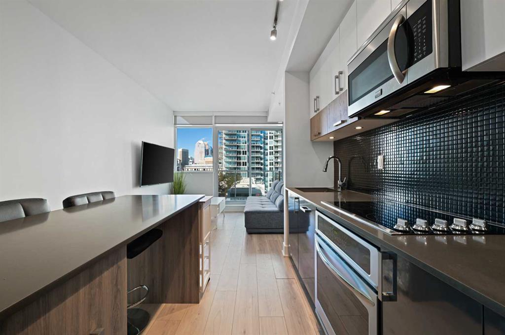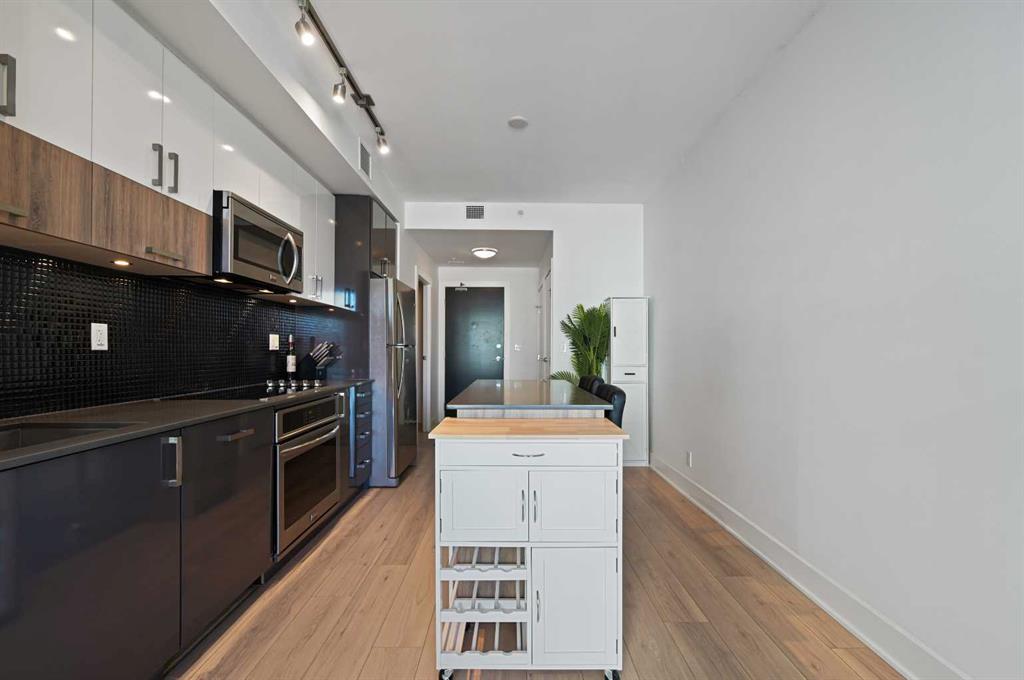 Looking for a home that matches your ambition and energy? Welcome to FIRST, located in the heart of East Village—Calgary’s most vibrant downtown community. This modern and stylish 2-bedroom + den condo offers the perfect balance of comfort, functionality, and city living for the on-the-go professional. From the moment you walk in, you’ll love the open-concept layout flooded with natural light and views of the downtown skyline. The functionally designed kitchen features sleek appliances, a moveable island with storage, and plenty of space to entertain friends or enjoy a quiet night in. The spacious primary bedroom features floor-to-ceiling windows and dual closets, leading to a contemporary 4-piece bathroom. With brand-new vinyl plank flooring, in-suite laundry, separate storage, and titled underground parking, this unit checks every box. Whether you need a dedicated home office, a creative space, or a guest room, the versatile den adapts to your needs—ideal for hybrid work or weekend hosting. Enjoy the following amenities to fit your lifestyle. Fitness centre & yoga studio, rooftop terrace, owner’s lounge, Concierge service, secure entry & visitor parking, bike storage for your commute or weekend adventures. Live steps from everything you love—river pathways, cafés, restaurants, groceries, Studio Bell, the Central Library, and public transit. Walk to work, meet friends for drinks, or explore Calgary’s most exciting neighborhood right outside your door. This is more than a condo. It’s your launchpad to everything downtown has to offer. Book your private tour today and experience urban living, redefined.