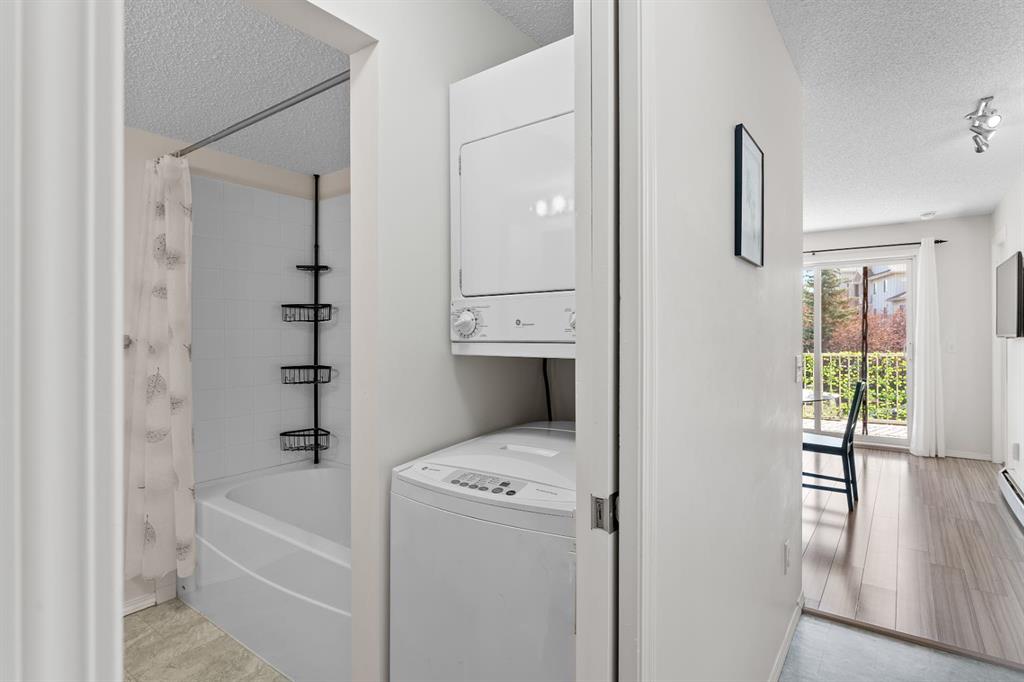 **INVESTOR ALERT** Welcome to this cozy and well-maintained second-floor unit, ideally located in the highly desirable community of Coventry Hills. Perfect for first-time home buyers or investors, this 1 bedroom, 1 bathroom condo offers comfort, convenience, and unbeatable value. Step inside to find a spacious bedroom featuring his and hers closets, leading into a well-appointed 4-piece bathroom. The functional kitchen provides ample cabinet space, and the open-concept layout allows for seamless flow into the living and dining areas. Enjoy the added convenience of in-suite laundry and a titled underground parking stall for year-round comfort. This well-managed building offers exceptional value with condo fees that include heat, water, and electricity—making it both affordable and hassle-free. Situated steps from scenic pathways around a tranquil pond, this location is close to transit, restaurants, shopping, and the Vivo Recreation Centre. Quick and easy access to both Deerfoot Trail and Stoney Trail ensures effortless commuting in any direction. Don’t miss this incredible opportunity to own in a vibrant, established community!