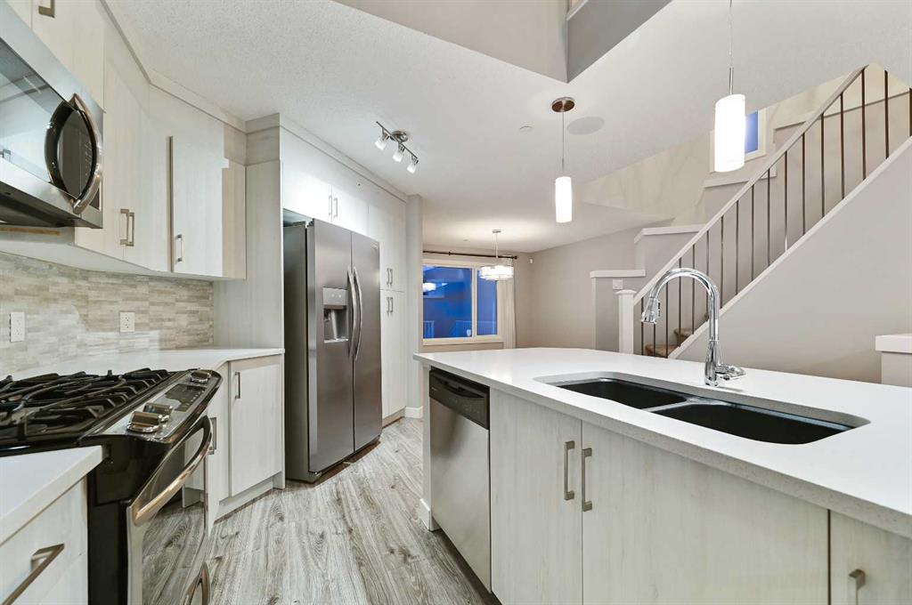 Welcome to this LIKE-NEW, BEAUTIFULLY UPGRADED 3-bedroom, 2.5-bathroom home offering 1,636 sq ft of stylish living space in one of Calgary’s most desirable growing communities. Ideally located on a QUIET STREET near the community centre, pond, and playgrounds—with easy access to Stoney Trail, Deerfoot Trail, Airdrie, and the airport—this home delivers both comfort and convenience. Step inside to a bright and welcoming open-concept layout featuring SOARING CEILINGS, LARGE WINDOWS, and SKYLIGHTS that flood the space with natural light. THE CHEF-INSPIRED KITCHEN is a showstopper, equipped with a MASSIVE QUARTZ ISLAND, QUARTZ COUNTERTOPS, DESIGNER BACKSPLASH, and UPGRADED STAINLESS STEEL APPLIANCES that include a GAS RANGE and REFRIGERATOR WITH WATER AND ICE DISPENSER. Ample cabinetry and sleek finishes make it both functional and beautiful. The cozy living room with a GAS FIREPLACE is the perfect spot to unwind, while the spacious dining area—ideally situated next to the back mudroom and powder room—opens onto a large, private deck with a gas line, ideal for summer BBQs and entertaining. A STUNNING SPIRAL STAIRCASE leads to the upper level where you’ll find two generously sized guest bedrooms, a 4-piece guest bath with QUARTZ COUNTERS, and a convenient LAUNDRY ROOM WITH A FULL-SIZE WASHER AND DRYER. The private primary suite offers a true retreat with a WALK-IN CLOSET and a LUXURIOUS ENSUITE featuring DUAL SINKS WITH QUARTZ COUNTERS and an OVERSIZED WALK-IN SHOWER. The lower level is ready for your future development ideas—whether that’s a home gym, media room, or additional bedrooms. Bonus: SEPARATE SIDE ENTRY near the basement door and ROUGHED IN PLUMBING offers excellent potential for a private suite (subject to the city of Calgary approval) or added flexibility. Outside, enjoy a BEAUTIFULLY LANDSCAPED AND FULLY FENCED BACKYARD, a HUGE REAR DECK perfect for morning coffee or relaxing evenings, and an OVERSIZED DOUBLE DETACHED GARAGE. This is one of Brookfield Residential’s most popular and thoughtfully designed floor plans, showcasing exceptional craftsmanship throughout. Located in the vibrant, master-planned community of Livingston, this home offers access to over 250 acres of parks and green space, an extensive pathway system, and the 35,000 sq. ft. Livingston Hub featuring a gym, skating rink, splash park, and more. With quick access to Stoney and Deerfoot Trails, nearby schools, shopping, and future C-Train access, Livingston is the perfect place for active, connected living. If you are looking for a great investment property, this home was recently rented at $2600 per month. Don’t miss your chance to own this MOVE-IN READY GEM—call your favourite Realtor today to book your private tour!