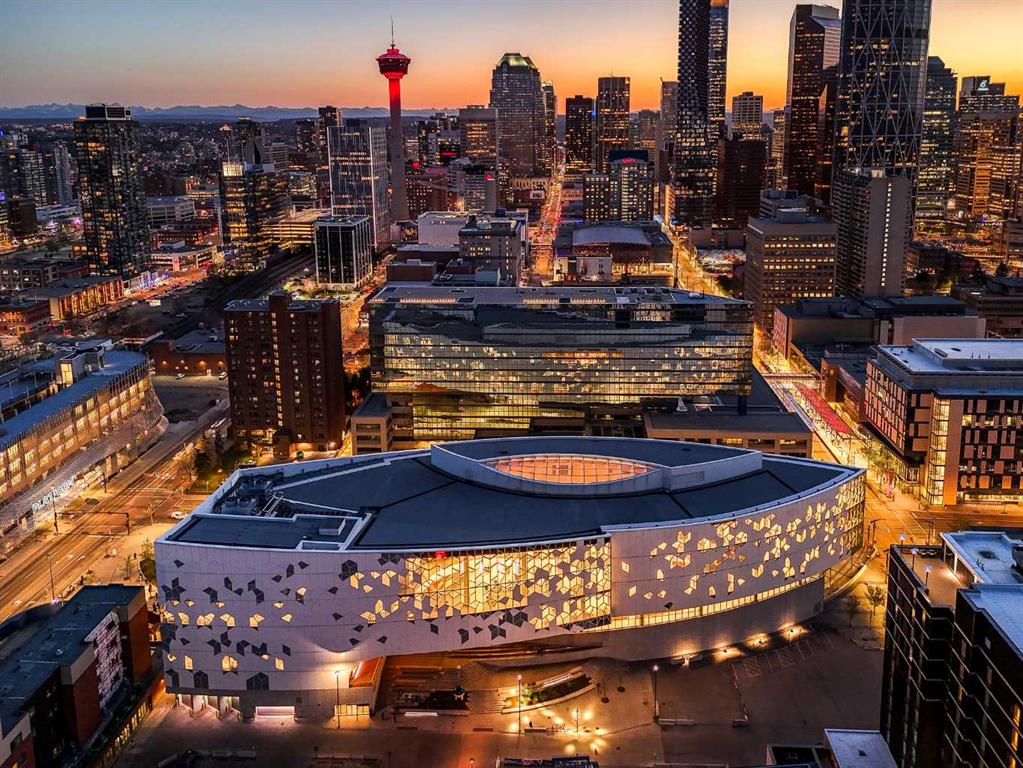 PRICE REDUCED!! STUNNING 2-BEDROOM, 2-BATHROOM LUXURY CORNER UNIT FEATURING A RARE 319 SQ. FT. WRAP-AROUND BALCONY! in Calgary’s vibrant East Village. Floor-to-ceiling windows fill this home with natural light, in this open-concept space that is one the best layouts in this modern full amenity building. Boasting quartz countertops, integrated custom-panel appliances, and in-suite laundry. The spacious living and dining area are perfect for entertaining with direct access to the one of a kind huge balcony fitted with a natural gas link...the perfect mix of indoor/outdoor living. The large windows continue into the primary suit which offers a full ensuite with a glass enclosed walk in shower. The second bedroom is also a good size that is perfect for guests or a home office allowing you to still feel part of the trendy action of the East Village. Another full bathroom, and large entryway complete this home. Enjoy premium building amenities including concierge, security, an owners’ lounge, fitness center, 360° observation decks, and an elegant entertainment room. Steps from dining, shopping, and recreation, this condo includes There is even a titled underground secured parking stall and a storage locker, plus the home has been freshly painted! The perfect blend of luxury, comfort, and convenience all in one of Calgary most desirable communities!