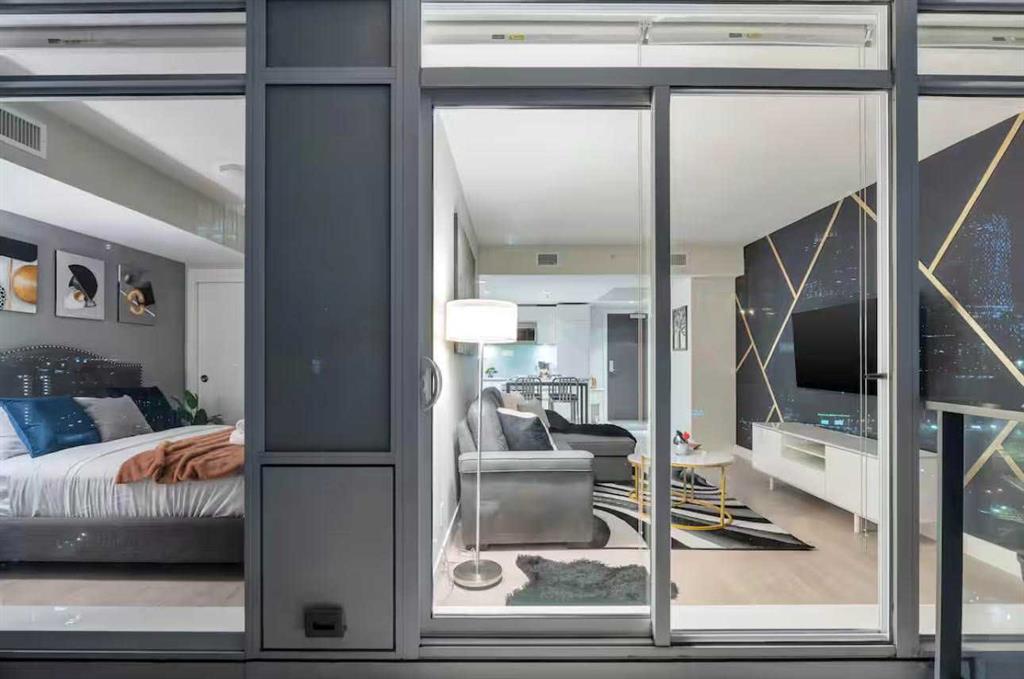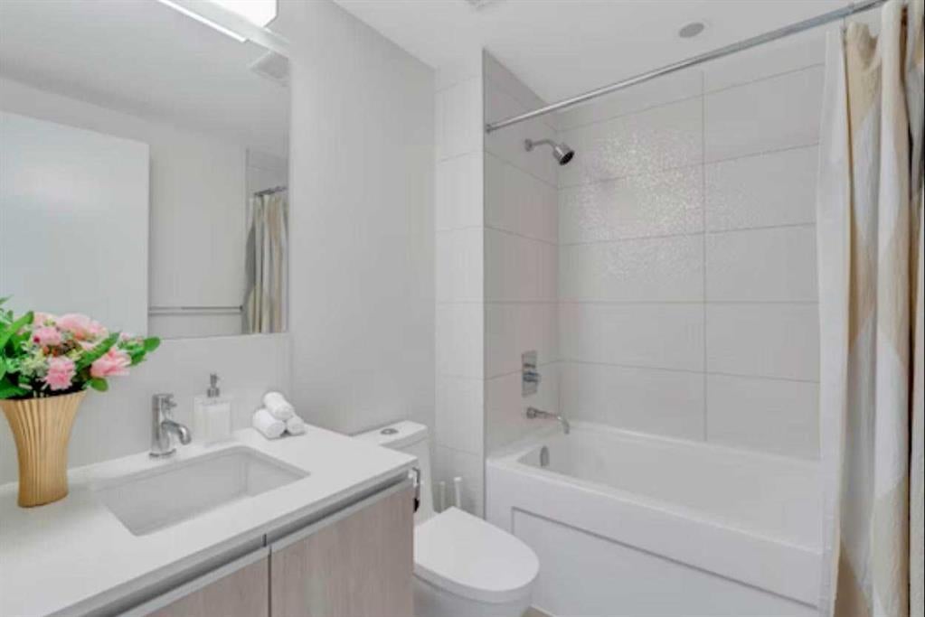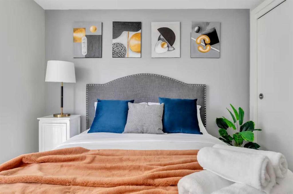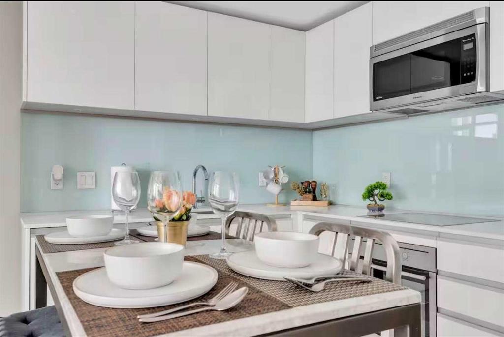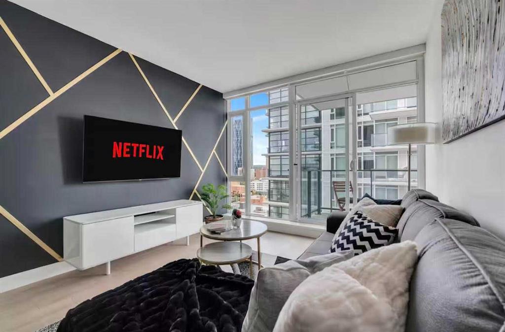 This stylish 1-bedroom, 1-bathroom residence sits high on the 17th floor, showcasing sweeping west-facing views of Calgary’s skyline. Inside, you’ll find a sleek open-concept design with bright finishes, quartz countertops, and custom cabinetry paired with light-toned vinyl plank flooring. The kitchen, equipped with premium Blomberg and AEG appliances. The living area is bathed in natural light and extends effortlessly to a spacious balcony, the perfect spot to unwind and take in the city lights. The bathroom combines function and relaxation with a deep soaker tub and clean quartz detailing. Residents of The Guardian enjoy access to a state-of-the-art fitness facility, stylish social lounge, workshop, bike storage, concierge, and 24-hour security. Positioned at the gateway to Calgary’s Culture + Entertainment District, this location is second to none. You’ll be steps from Stampede Park, the soon-to-be new arena, and the upcoming Green Line LRT. With all furniture negotiable, this home can be move-in ready from day one.
