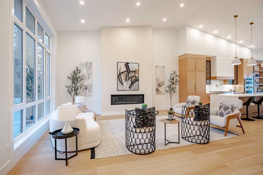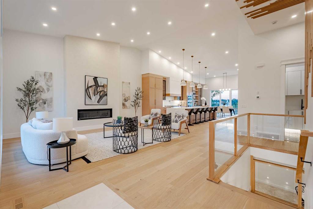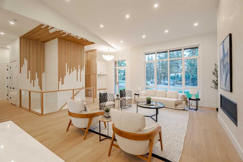 Here it is, a once in a lifetime opportunity to own a ~2,400 sqft bungalow that exemplifies the pinnacle of luxury living—flawlessly designed and masterfully built. Located in coveted St. Andrews Height situated on a large lot with stunning views of downtown Calgary, this home defines luxury while encapsulating timeless elegance, making it an absolute masterpiece. The luxurious presence of this home is instantly exemplified by the stunning curb appeal, with a truly unique modern farmhouse look, featuring stone and wood accents, all highlighted by an exposed concrete pathway leading to your grand entryway. Upon entering, your eyes are drawn to the jaw dropping 12-feet ceilings on the main level, featuring a grand 16-foot vault. The large living area is complete with an elegant venetian plastered gas fireplace and a large window showcasing your stunning downtown views! The main level of this grand residence is filled with natural light with no outdoor noise, thanks to the TRIPLE PANE ‘Tilt and Turn’ European windows. The designer kitchen encapsulates this house as an entertainer's dream with its stunning cabinetry featuring REAL oak cabinets, glass cabinetry, 14-foot island, and stunning paneled JennAir appliance package, perfect for any chef! Next to the kitchen you have a large dining area that features a stunning European style patio slider that provides an abundance of light and leads directly to the deck and rooftop patio, encouraging a seamless indoor/outdoor lifestyle. Stepping back inside, you have a large mudroom and a dedicated pantry room ensuring no shortage of storage. The main floor continues to wow with a central staircase, featuring a glass railing and custom oak paneling acting as the true centerpiece of this home. This level also features a dedicated laundry room and a stunning 3-piece common bathroom with a custom shower. Down the hall you are welcomed to one of TWO primary bedrooms. The first primary bedroom features a large closet and a 3-piece bathroom with a custom-built shower and heated flooring. Moving to the second primary bedroom the wow factor continues with a custom walk-in closet, a stunning 5-piece bathroom, with dual vanities, a free-standing tub, heated flooring, a large custom shower, and a stunning chandelier over the tub. This room also includes a lookout patio – perfect for that morning coffee! The main level is complete with a third bedroom, making this home perfect for families of all sizes. Like the main floor, the basement of this home is an entertainer's dream! Starting with the open Rec Room featuring a large entertainment unit and a large wet bar. The lower level is complete with 2 additional bedrooms and a 4-piece bathroom. The fully finished triple car garage features a roof top patio, transforming the backyard into an oasis, perfect for hosting. This home had no item overlooked and comes with new home warranty to put your mind at ease. Luxury, Functionality, Location and Unbeatable Value!