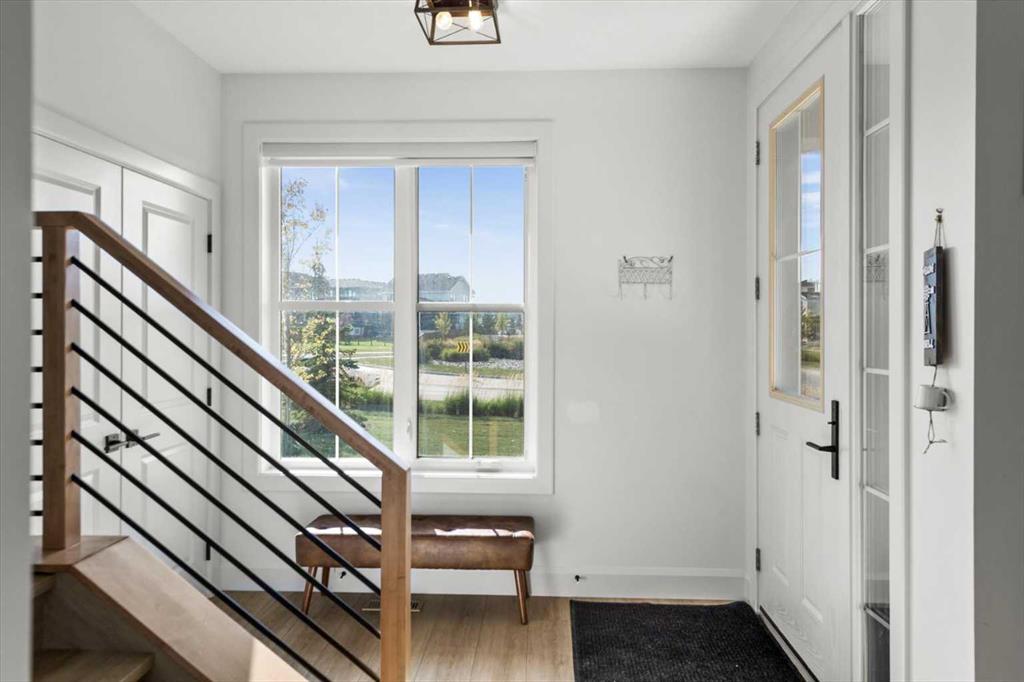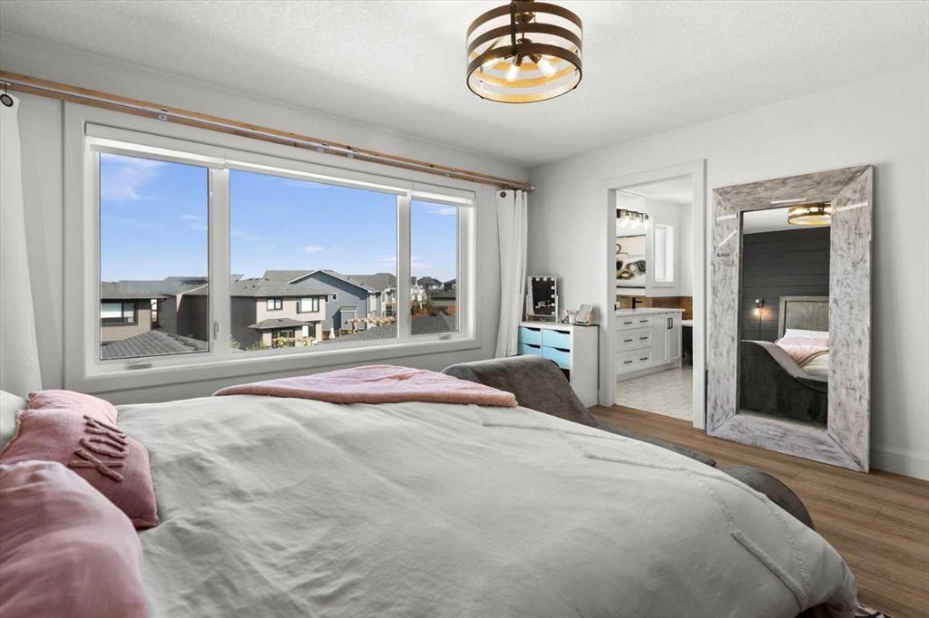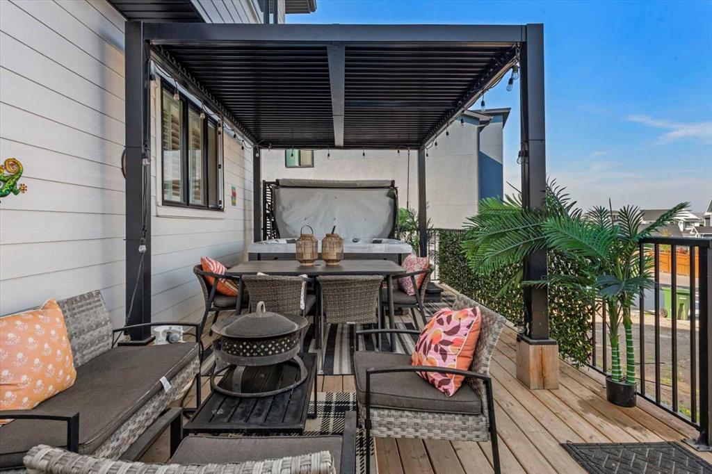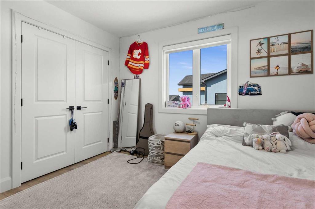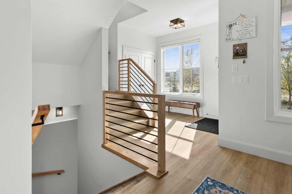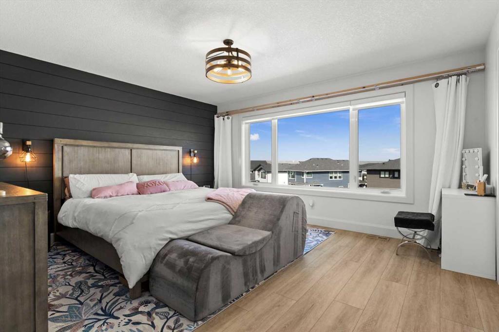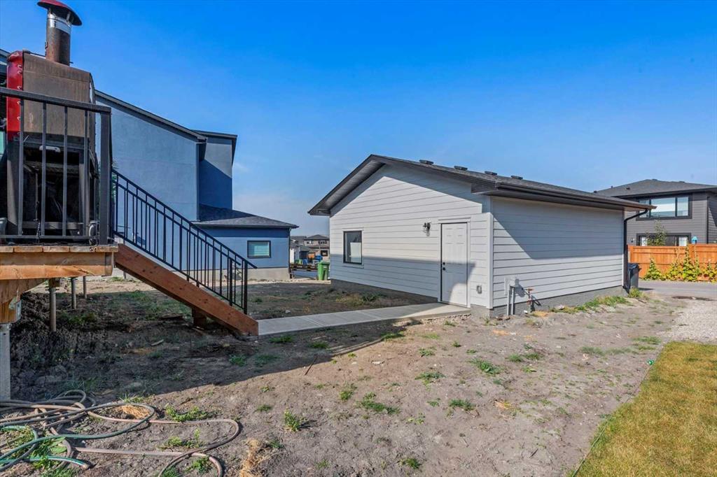 Located in the sought-after, award-winning community of Harmony, this newly built farmhouse-inspired modern design is sure to impress. With over 2,300 sq. ft. of thoughtfully designed living space and more than $40,000 in upgrades, this Broadview-built home is the perfect family retreat, complete with a double detached garage and plenty of storage options throughout. Move-in ready with thoughtfully selected upgraded finishes, it’s designed for both comfort and style. The main floor, with abundant natural light and large windows, features an open-concept living and dining area, a modern chef’s kitchen with quartz countertops, beautiful backsplash and stainless steel appliances, a private office, and a stylish powder room. Step outside to your dream oasis, a full-length deck with a custom built pergola, privacy walls, BBQ area, lounge space, outdoor lighting and newly hot tub—perfect for entertaining or relaxing evenings. Upstairs, a modern bonus room provides an exceptional space for relaxing, alongside two bedrooms with closet organizers, a 5-piece bathroom, and a laundry room with plenty of additional storage. The primary suite is spacious and bright with large windows, featuring a spa-inspired 5-piece ensuite with beautiful tile, a modern freestanding tub, and a large walk-in closet. The basement remains undeveloped, ready for your personal touch. Additional highlights include gemstone lighting, air conditioning, water softener, premium flooring, custom built-ins, upgraded staircase railings, and upgraded lighting and tile throughout. The yard is an open canvas awaiting your green thumb—perfect for creating your own outdoor oasis. Combined with striking curb appeal, a functional family-friendly layout, and Harmony’s exceptional amenities—including scenic lakes, pathways, golf course, and welcoming community spirit—this farmhouse-inspired home truly has it all. Conveniently located across from the school bus stop, it’s an ideal family home.
