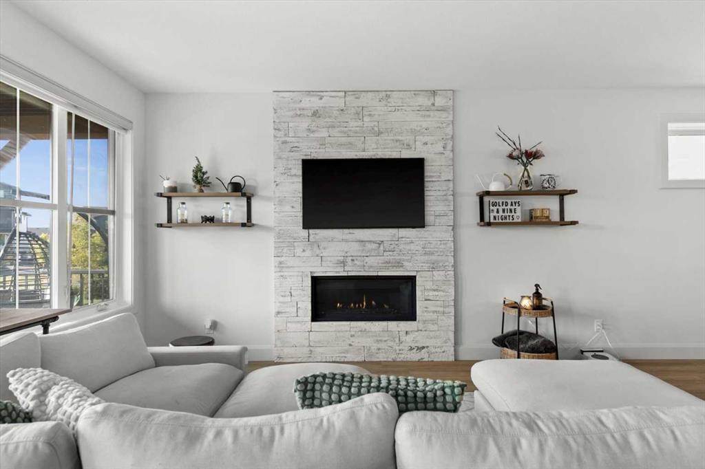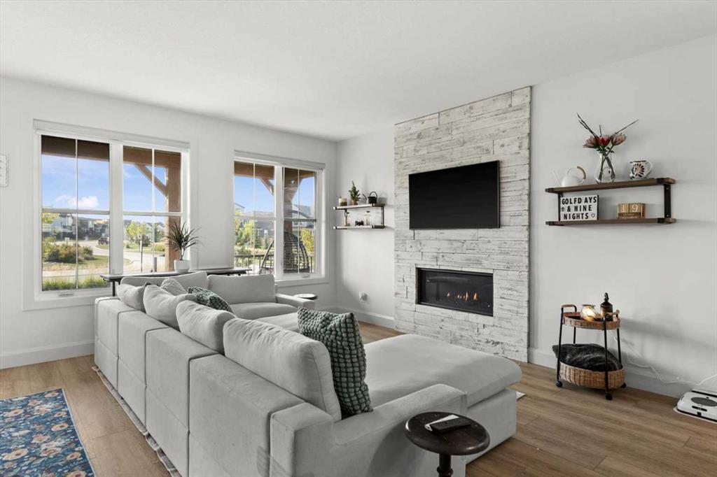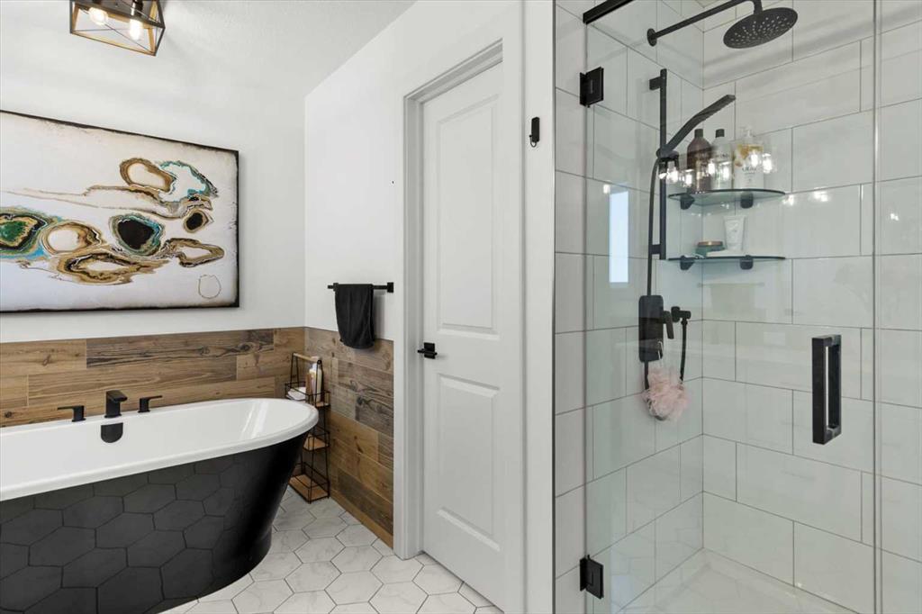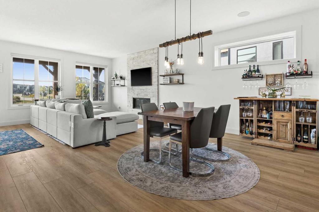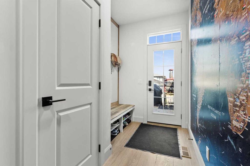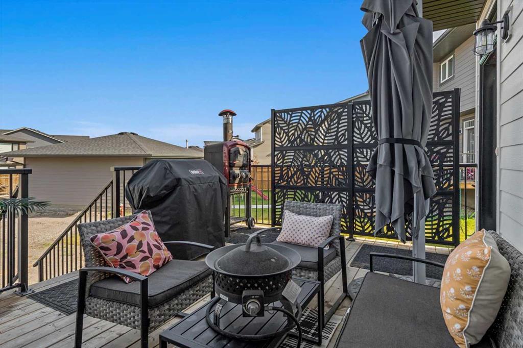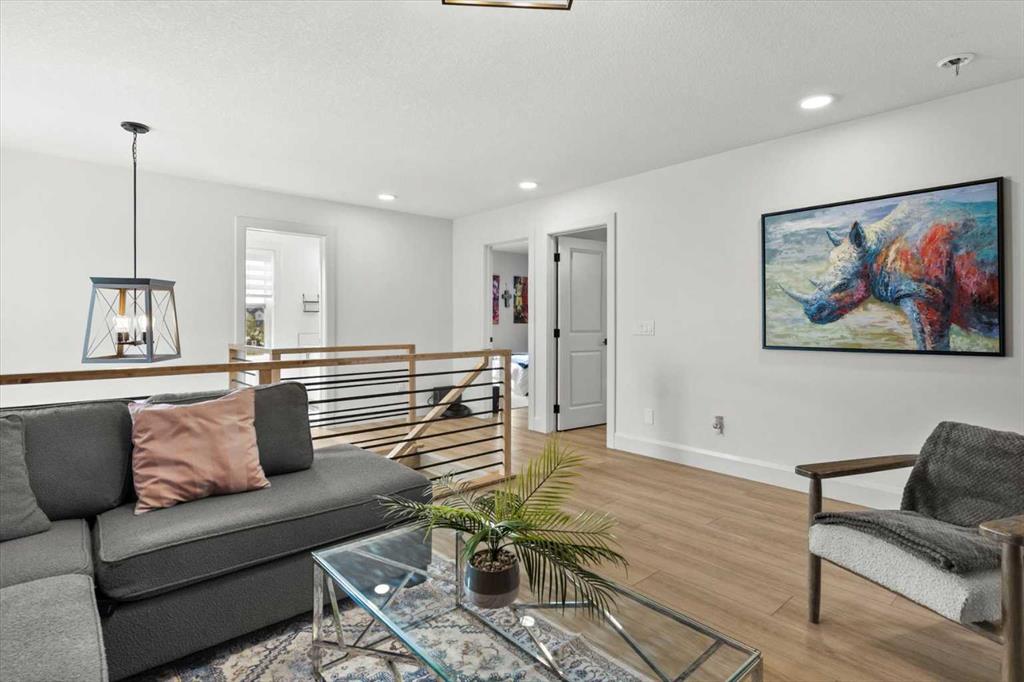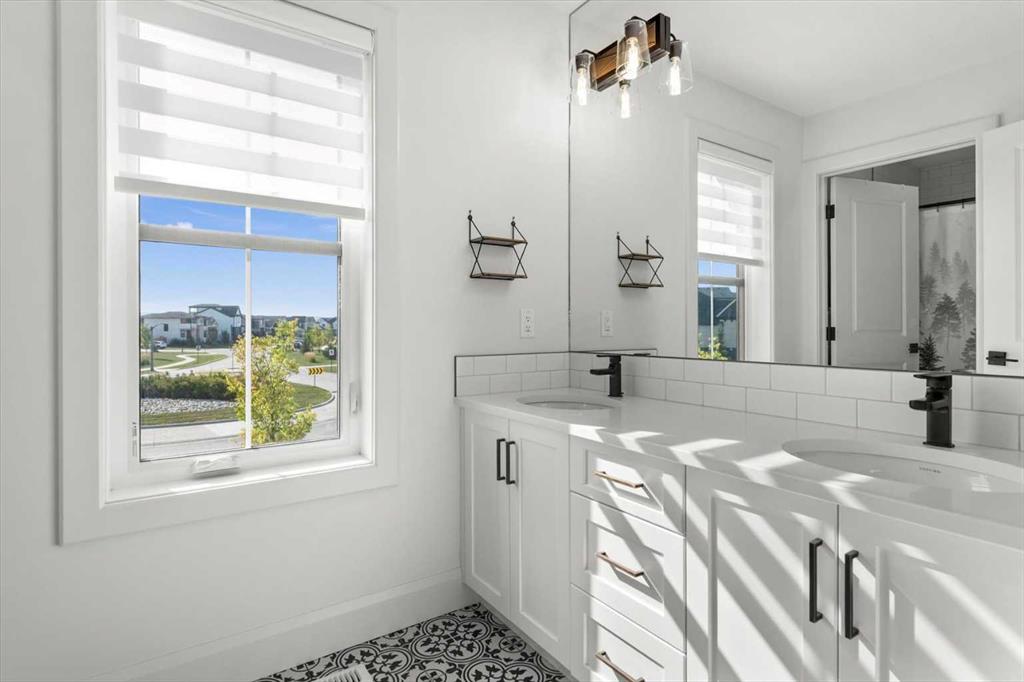 Located in the sought-after, award-winning community of Harmony, this newly built farmhouse-inspired modern design is sure to impress. With over 2,300 sq. ft. of thoughtfully designed living space and more than $40,000 in upgrades, this Broadview-built home is the perfect family retreat, complete with a double detached garage and plenty of storage options throughout. Move-in ready with thoughtfully selected upgraded finishes, it’s designed for both comfort and style. The main floor, with abundant natural light and large windows, features an open-concept living and dining area, a modern chef’s kitchen with quartz countertops, beautiful backsplash and stainless steel appliances, a private office, and a stylish powder room. Step outside to your dream oasis, a full-length deck with a custom built pergola, privacy walls, BBQ area, lounge space, outdoor lighting and newly hot tub—perfect for entertaining or relaxing evenings. Upstairs, a modern bonus room provides an exceptional space for relaxing, alongside two bedrooms with closet organizers, a 5-piece bathroom, and a laundry room with plenty of additional storage. The primary suite is spacious and bright with large windows, featuring a spa-inspired 5-piece ensuite with beautiful tile, a modern freestanding tub, and a large walk-in closet. The basement remains undeveloped, ready for your personal touch. Additional highlights include gemstone lighting, air conditioning, water softener, premium flooring, custom built-ins, upgraded staircase railings, and upgraded lighting and tile throughout. The yard is an open canvas awaiting your green thumb—perfect for creating your own outdoor oasis. Combined with striking curb appeal, a functional family-friendly layout, and Harmony’s exceptional amenities—including scenic lakes, pathways, golf course, and welcoming community spirit—this farmhouse-inspired home truly has it all. Conveniently located across from the school bus stop, it’s an ideal family home.