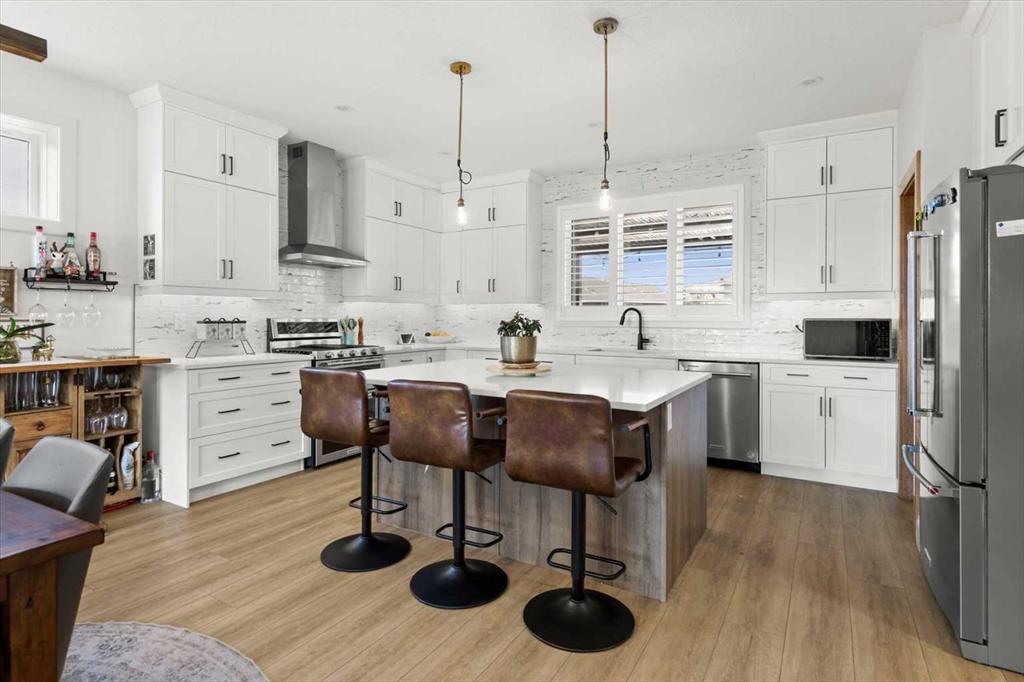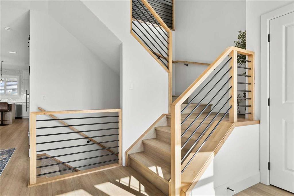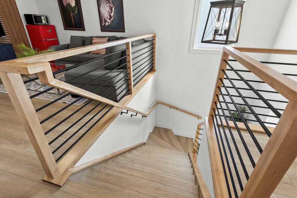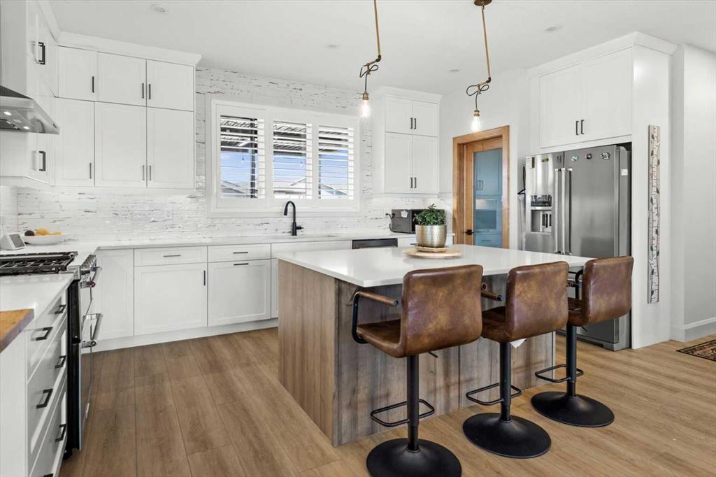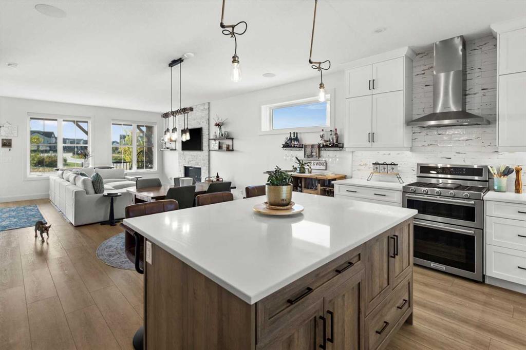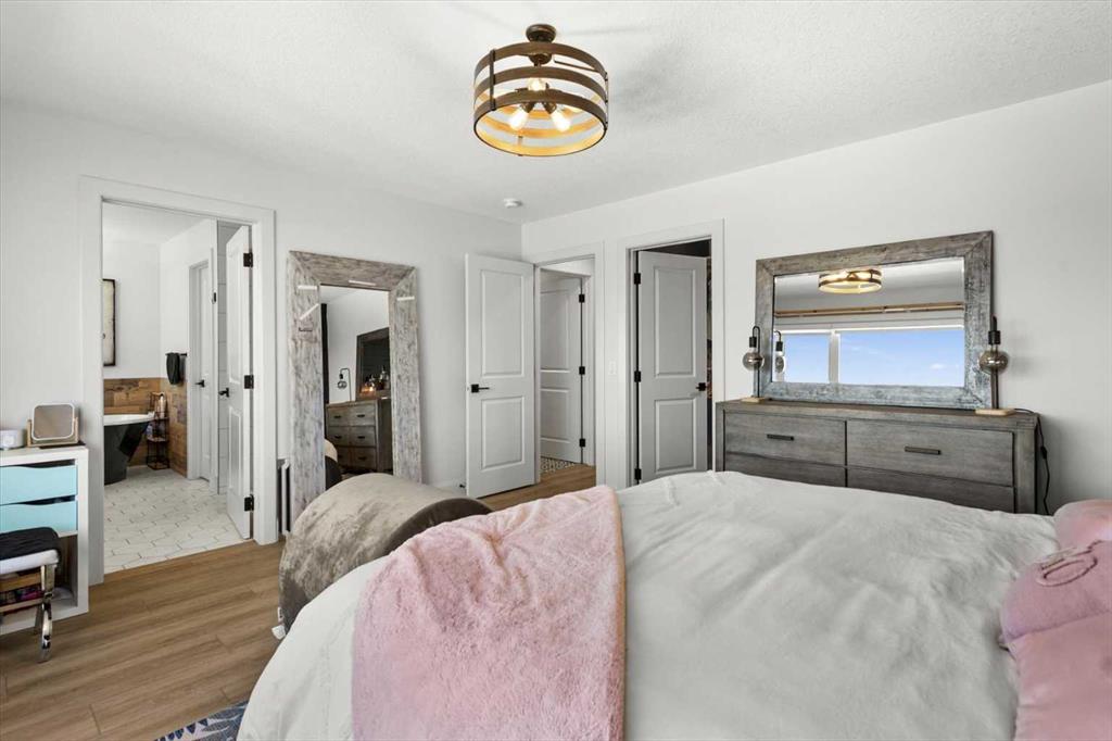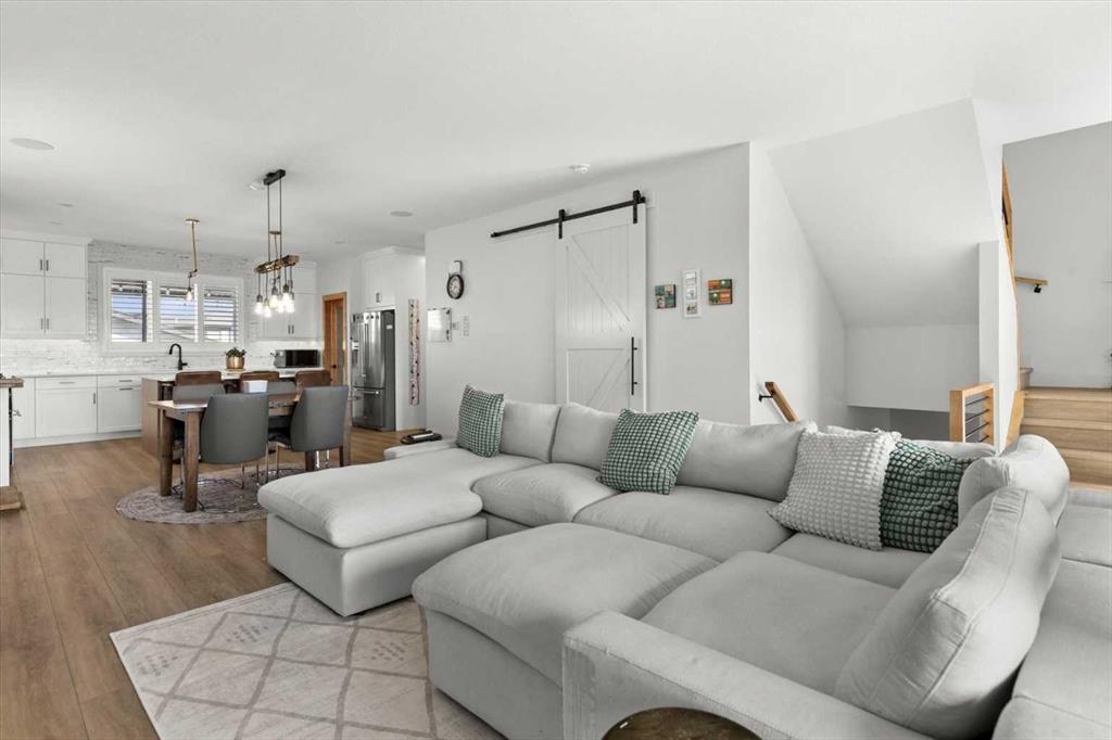 Located in the sought-after, award-winning community of Harmony, this newly built farmhouse-inspired modern design is sure to impress. With over 2,300 sq. ft. of thoughtfully designed living space and more than $40,000 in upgrades, this Broadview-built home is the perfect family retreat, complete with a double detached garage and plenty of storage options throughout. Move-in ready with thoughtfully selected upgraded finishes, it’s designed for both comfort and style. The main floor, with abundant natural light and large windows, features an open-concept living and dining area, a modern chef’s kitchen with quartz countertops, beautiful backsplash and stainless steel appliances, a private office, and a stylish powder room. Step outside to your dream oasis, a full-length deck with a custom built pergola, privacy walls, BBQ area, lounge space, outdoor lighting and newly hot tub—perfect for entertaining or relaxing evenings. Upstairs, a modern bonus room provides an exceptional space for relaxing, alongside two bedrooms with closet organizers, a 5-piece bathroom, and a laundry room with plenty of additional storage. The primary suite is spacious and bright with large windows, featuring a spa-inspired 5-piece ensuite with beautiful tile, a modern freestanding tub, and a large walk-in closet. The basement remains undeveloped, ready for your personal touch. Additional highlights include gemstone lighting, air conditioning, water softener, premium flooring, custom built-ins, upgraded staircase railings, and upgraded lighting and tile throughout. The yard is an open canvas awaiting your green thumb—perfect for creating your own outdoor oasis. Combined with striking curb appeal, a functional family-friendly layout, and Harmony’s exceptional amenities—including scenic lakes, pathways, golf course, and welcoming community spirit—this farmhouse-inspired home truly has it all. Conveniently located across from the school bus stop, it’s an ideal family home.