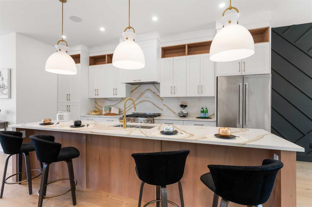 EXTENDED BASEMENT! Welcome to one of Killarney’s most exceptional homes — a brand new infill offering nearly 2,000 SqFt of beautifully designed living space. Here, elevated style meets everyday comfort in one of Calgary’s most sought-after inner-city neighbourhoods. Thoughtfully crafted for both daily living and upscale entertaining, this home combines modern design, an intelligent open-concept layout, and unmatched functionality into one remarkable package. As you step inside, a beautiful formal dining area sets the tone for the home, flowing seamlessly into the gourmet kitchen anchored by a striking 12-foot quartz island. Designed for both relaxed mornings and upscale gatherings, this kitchen is a space where style and practicality come together effortlessly. Across from the kitchen, a bright and versatile home office offers the perfect place to focus or create. Beyond, the inviting living room showcases a cozy fireplace — perfect for those cold Calgary winters — and glass patio doors that open to a large rear deck, creating a smooth transition between indoor and outdoor living. A built-in mudroom with generous storage and a chic, tucked-away powder room add thoughtful functionality to the main level. Upstairs, the primary suite is a light-filled retreat with a vaulted ceiling, walk-in closet, and a spa-inspired ensuite featuring beautifully patterned floors, dual sinks, and a freestanding tub. Two additional bedrooms, a stylish main bath, and a conveniently located laundry room complete the upper level. Downstairs the extended basement is a standout feature, offering even more flexibility with a bright and spacious legal suite. This level includes a full kitchen, open living area, two private bedrooms, a flex room, and dedicated laundry room. Whether envisioned as an income-generating opportunity, a comfortable space for multi-generational living, or an inviting private retreat for guests, this space offers unmatched versatility without compromising style. The property is complete with a double detached garage and is ideally situated on a paved back alley, offering both convenience and functionality. With its elegant finishes, well-planned layout, abundant natural light, and a location just steps from parks, schools, amenities and quick connections to downtown, this home is more than just beautiful — it’s a smart investment in style, comfort, and long-term value.