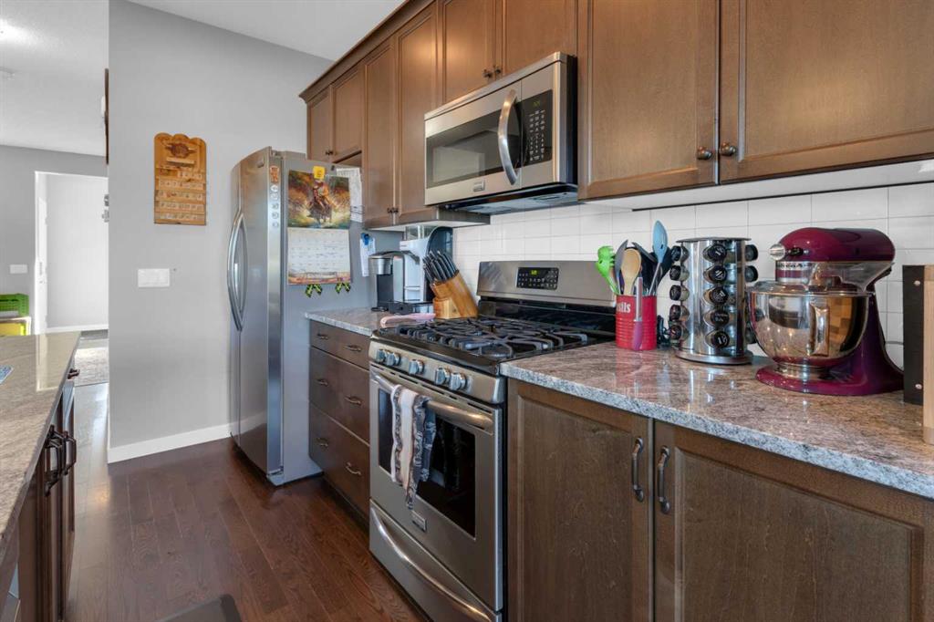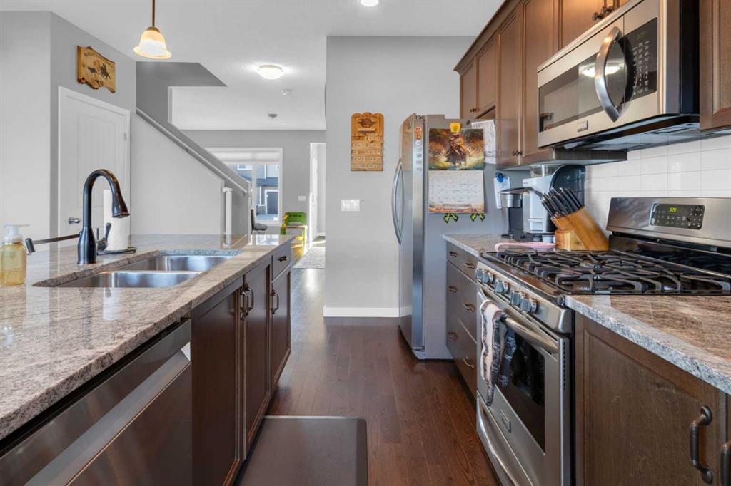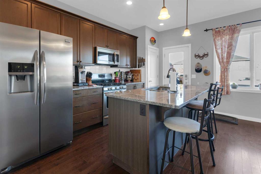 Nestled in the heart of Fireside, Cochrane, this affordable three-bedroom, family home boasts both modern design and practical living. The main floor is very inviting with sunny, south facing window, hardwood floors throughout and a gas fireplace keeping you warm & cozy in the winter and central air conditioning keeping you cool in the warmer months. The spacious kitchen is the perfect for entertaining or family dinners, equipped with stainless steel appliances, upgraded gas range and granite countertops. Upstairs you will find the primary bedroom with four-piece ensuite with granite countertops and walk in closet. Full basement with roughed in plumbing for future development. Extra-large capacity hot water tank and high efficiency furnace. Other pluses include central vac, nest thermostat and security system hardware. The back yard is fully fenced with dog run, a gravel parking pad and lane behind. Fireside connects residents with the outdoors like no other community. Hosting a community garden, outdoor ice-rink, two parks, soccer fields, a baseball diamond, pathway systems and stunning preserved wetlands. Fireside also boasts two schools within the community, Fireside School (Rocky View Schools K-8) and a K-9 school for the Calgary Catholic School District. Book your private tour today and move in by Christmas!