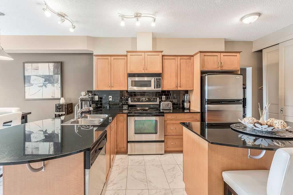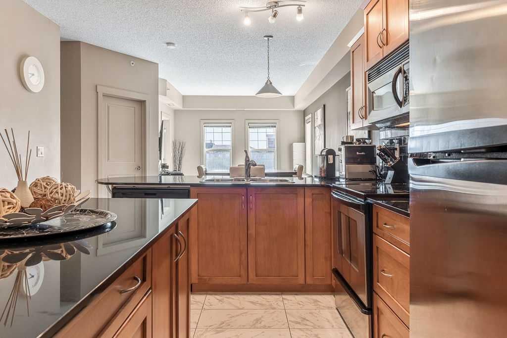 Welcome to the highly sought-after and mature community of Lake Bonavista! This beautifully maintained 4th-floor EAST-facing unit is one of the largest in the complex, offering over 1,000 sq ft of functional living space and TWO TITLED heated underground parking stalls. QUALITY OF LIFESTYLE is yours in the Gateway Southcentre a modern CONCRETE building with state of the art GEO-THERMAL HEATING SYSTEM (owner can control their own heat and air conditioning) Enjoy bright morning sun and peaceful views of the lush, landscaped courtyard. Inside, you’ll find a spacious open-concept layout featuring upgraded ceramic tile flooring, a well-appointed kitchen with granite countertops and breakfast bar, and 9-foot ceilings throughout. The unit offers 2 generous bedrooms, including a primary suite with walk-through closet and private 4-piece ensuite, a second full bathroom, and a large den—perfect for a home office or flex space. Additional highlights include in-suite laundry, a walk-in coat closet, in-suite storage, and a separate storage locker in the parkade. The Gateway South Centre is a well-managed, concrete building offering a full fitness centre, party rooms, guest suites, and a beautifully landscaped courtyard. Condo fees include ALL utilities—heat, electricity, and water! This is maintenance-free living in a prime location—just minutes from Southcentre Mall, transit, parks, and all the amenities Lake Bonavista has to offer.