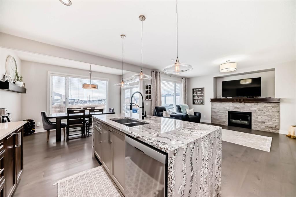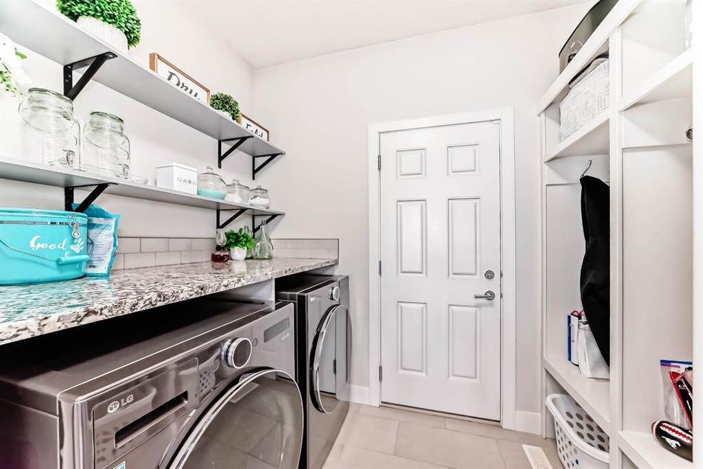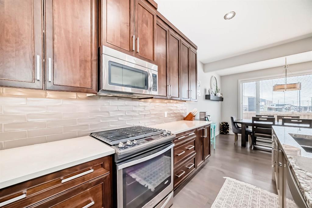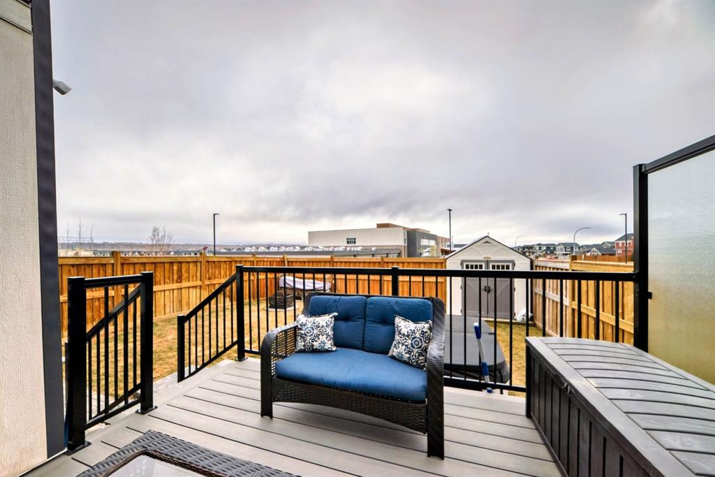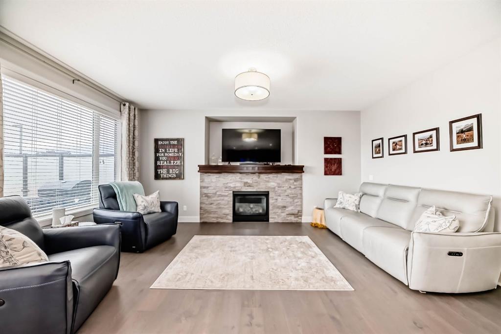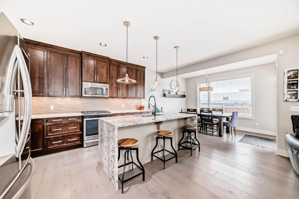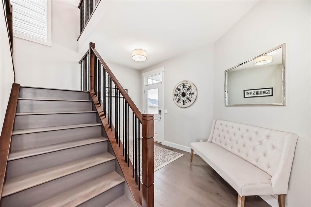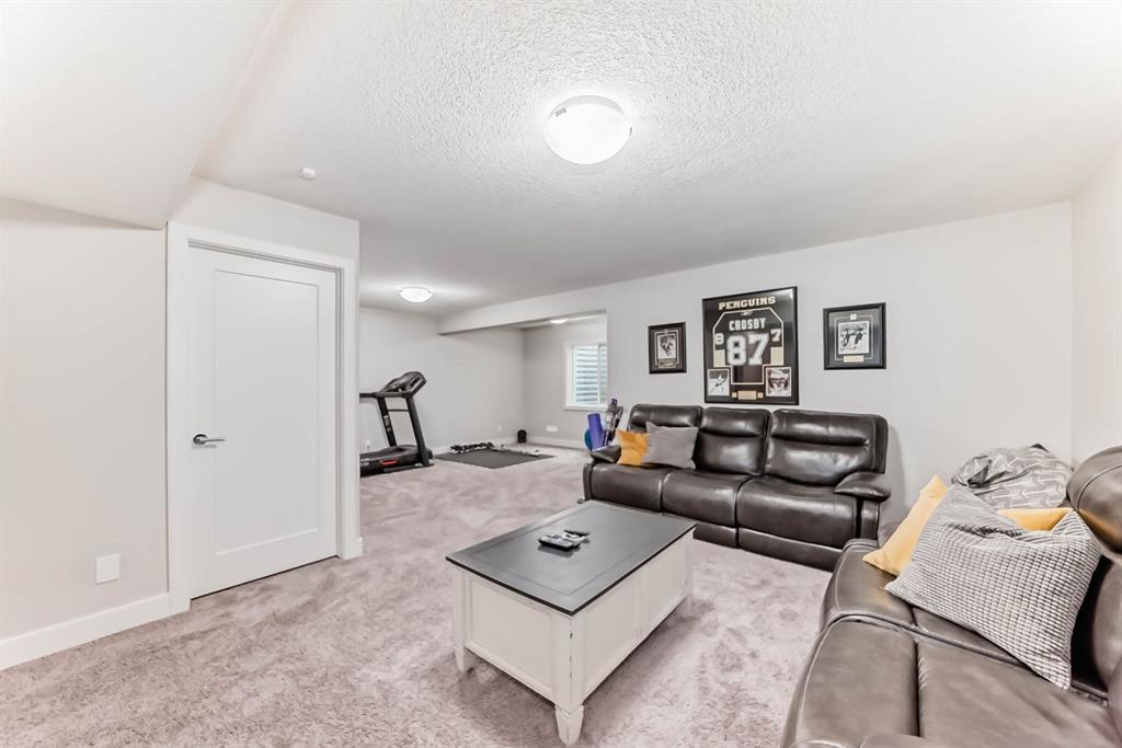 This home is a true 10/10—pride of ownership is evident throughout! Originally a Janssen Showhome and still with the original owners, this impeccably maintained property has it all! Step into the spacious foyer and immediately notice the soaring 9-foot ceilings and impressive 8-foot doors on both the main and upper levels. Rich hardwood flooring flows seamlessly into the open-concept living and kitchen areas. The kitchen features custom wood cabinetry with under-cabinet lighting, a brand-new stainless steel appliance package including a gas stove, and a stunning granite waterfall island. The large dining nook leads out to a beautifully landscaped backyard. Enjoy outdoor living with a new composite deck, privacy fencing, a stamped concrete patio, and a hot tub—perfect for entertaining or relaxing. A 6-foot wooden fence provides exceptional privacy all around. Back inside, the walk-through pantry conveniently connects to the oversized, heated garage, which offers ample storage options. Upstairs, the central bonus room—with peak-a-boo mountain views—creates a great separation between two spacious front bedrooms, a 4-piece bathroom, a 3rd bedroom currently used as a home office, and the impressive primary retreat at the rear. The luxurious 5-piece ensuite includes a glass-enclosed, heated shower and a walk-in closet outfitted with custom built-ins. The fully finished lower level offers a 5th bedroom, another full 4-piece bath, and a spacious family room with additional flex space—perfect for a home gym, media room, or play area. Additional upgrades and features include: Gemstone exterior lighting, Central A/C, Full irrigation system (front & back), Extended driveway, Custom Hunter Douglas blinds throughout This home is move-in ready with nothing left to do—just unpack and enjoy!