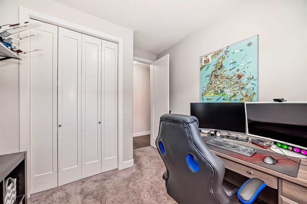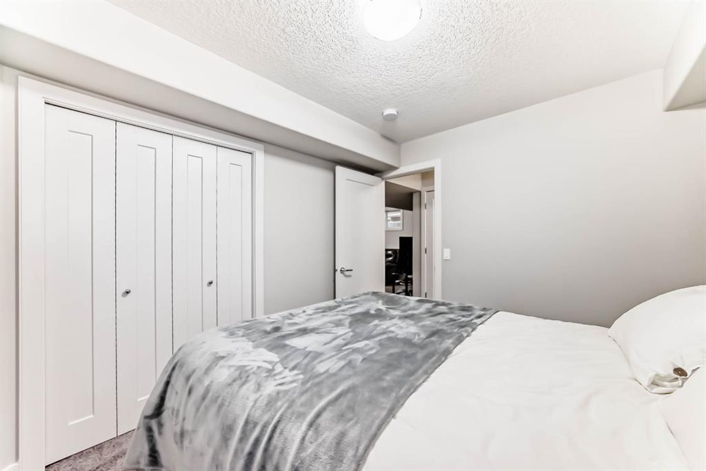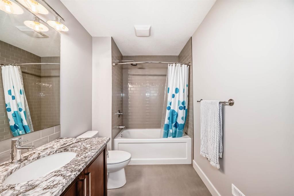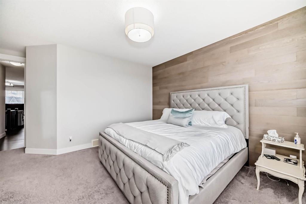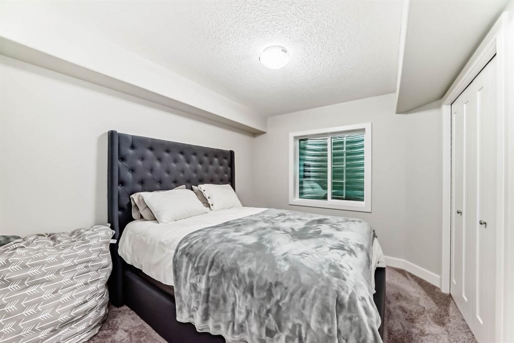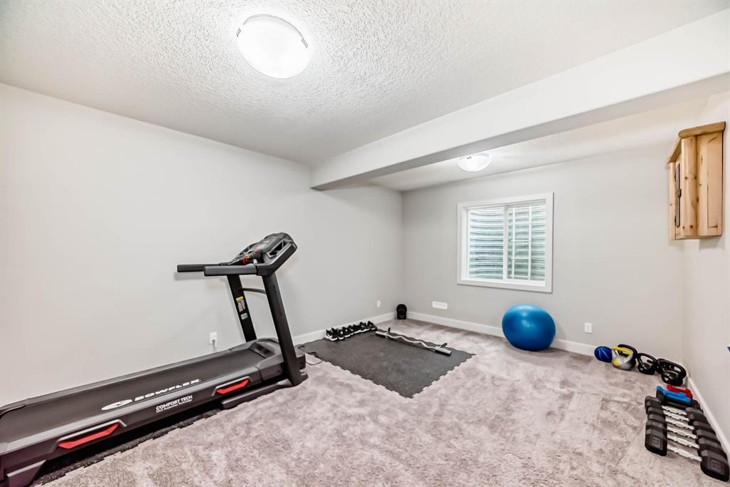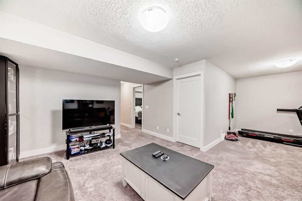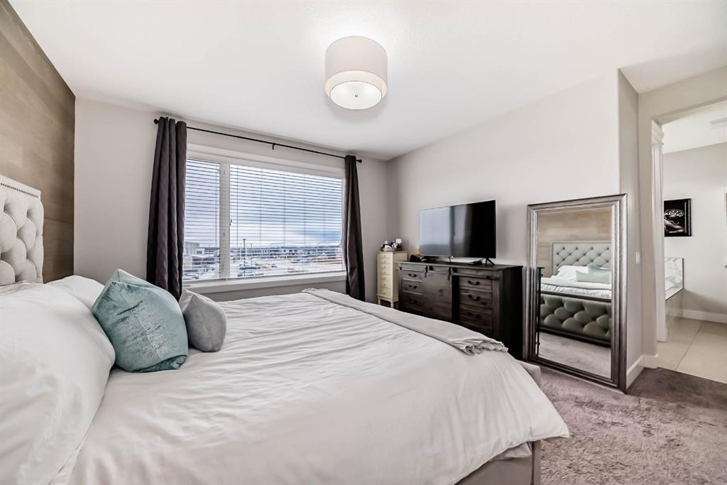 This home is a true 10/10—pride of ownership is evident throughout! Originally a Janssen Showhome and still with the original owners, this impeccably maintained property has it all! Step into the spacious foyer and immediately notice the soaring 9-foot ceilings and impressive 8-foot doors on both the main and upper levels. Rich hardwood flooring flows seamlessly into the open-concept living and kitchen areas. The kitchen features custom wood cabinetry with under-cabinet lighting, a brand-new stainless steel appliance package including a gas stove, and a stunning granite waterfall island. The large dining nook leads out to a beautifully landscaped backyard. Enjoy outdoor living with a new composite deck, privacy fencing, a stamped concrete patio, and a hot tub—perfect for entertaining or relaxing. A 6-foot wooden fence provides exceptional privacy all around. Back inside, the walk-through pantry conveniently connects to the oversized, heated garage, which offers ample storage options. Upstairs, the central bonus room—with peak-a-boo mountain views—creates a great separation between two spacious front bedrooms, a 4-piece bathroom, a 3rd bedroom currently used as a home office, and the impressive primary retreat at the rear. The luxurious 5-piece ensuite includes a glass-enclosed, heated shower and a walk-in closet outfitted with custom built-ins. The fully finished lower level offers a 5th bedroom, another full 4-piece bath, and a spacious family room with additional flex space—perfect for a home gym, media room, or play area. Additional upgrades and features include: Gemstone exterior lighting, Central A/C, Full irrigation system (front & back), Extended driveway, Custom Hunter Douglas blinds throughout This home is move-in ready with nothing left to do—just unpack and enjoy!