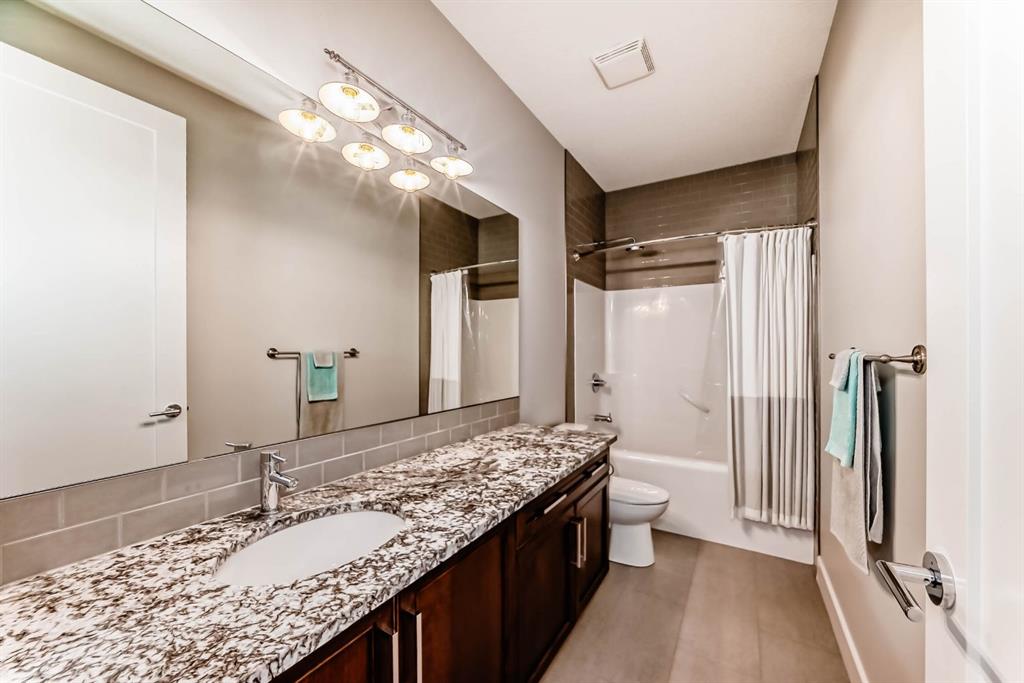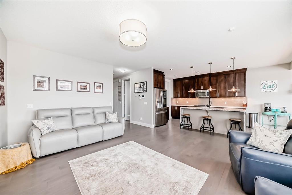 **This home is a true 10/10—pride of ownership is evident throughout!** Originally a Janssen Showhome and still with the original owners, this impeccably maintained property was built in 2015 but not occupied until 2018. Step into the spacious foyer and immediately notice the soaring 9-foot ceilings and impressive 8-foot doors on both the main and upper levels. Rich hardwood flooring flows seamlessly into the open-concept living and kitchen areas. The kitchen features custom wood cabinetry with under-cabinet lighting, a brand-new stainless steel appliance package including a gas stove, and a stunning granite waterfall island. The large dining nook leads out to a beautifully landscaped backyard. Enjoy outdoor living with a new composite deck, privacy fencing, a stamped concrete patio, and a hot tub—perfect for entertaining or relaxing. A 6-foot wooden fence provides exceptional privacy all around. Back inside, the walk-through pantry conveniently connects to the oversized, heated garage, which offers ample storage options. Upstairs, the central bonus room—with peak-a-boo mountain views—creates a great separation between two spacious front bedrooms, a 4-piece bathroom, a 3rd bedroom currently used as a home office, and the impressive primary retreat at the rear. The luxurious 5-piece ensuite includes a glass-enclosed, heated shower and a walk-in closet outfitted with custom built-ins. The fully finished lower level offers a 5th bedroom, another full 4-piece bath, and a spacious family room with additional flex space—perfect for a home gym, media room, or play area. Additional upgrades and features include: Gemstone exterior lighting, Central A/C, Full irrigation system (front & back), Extended driveway, Custom Hunter Douglas blinds throughout This home is move-in ready with nothing left to do—just unpack and enjoy!