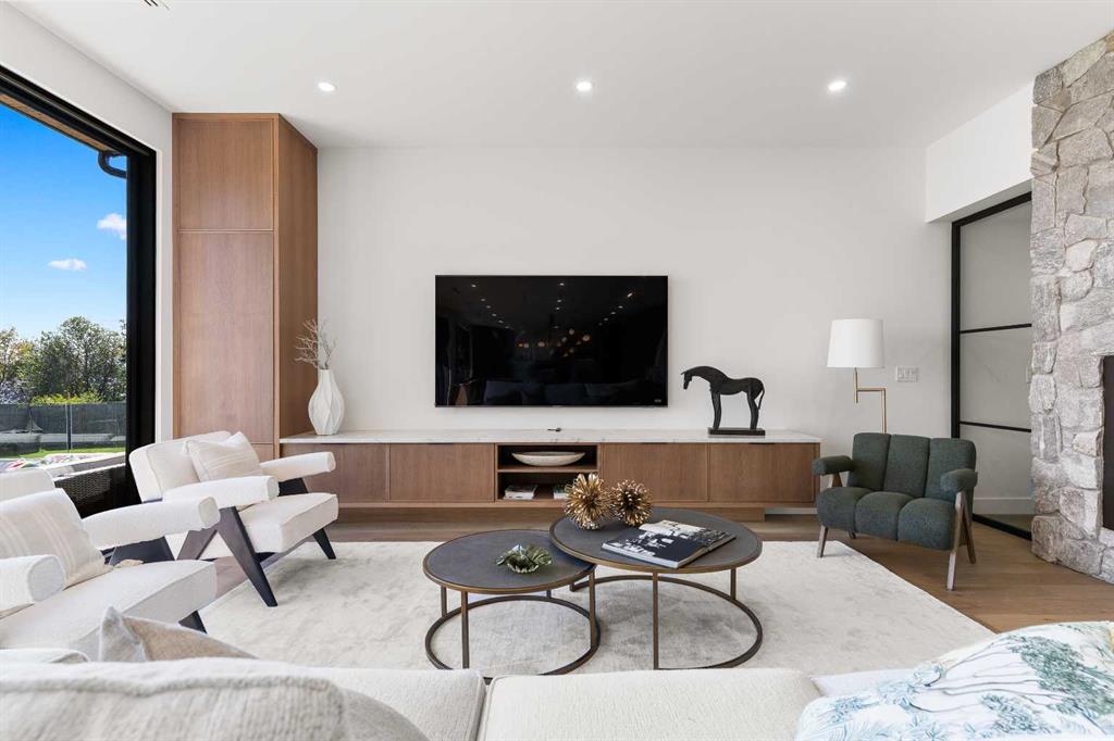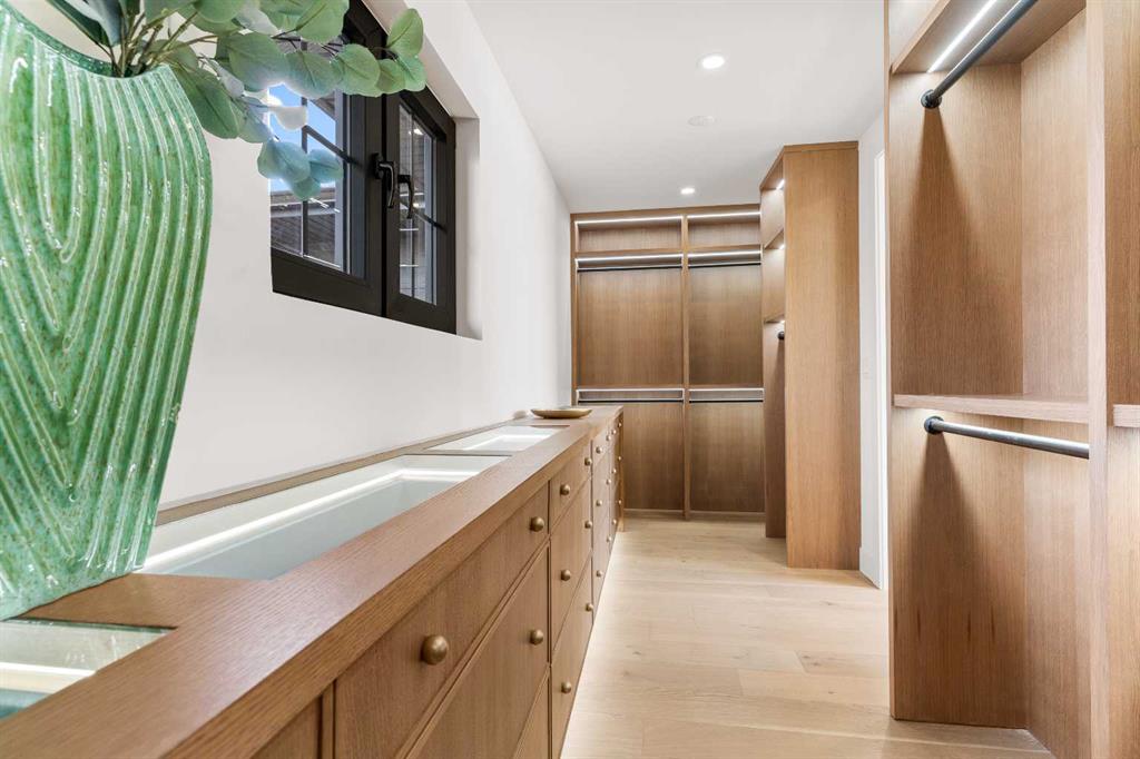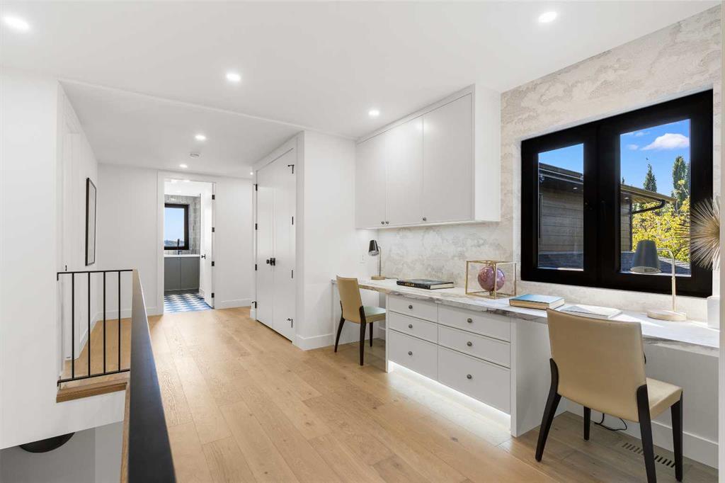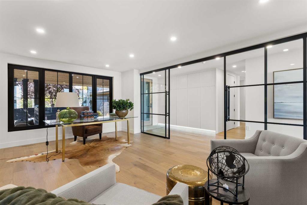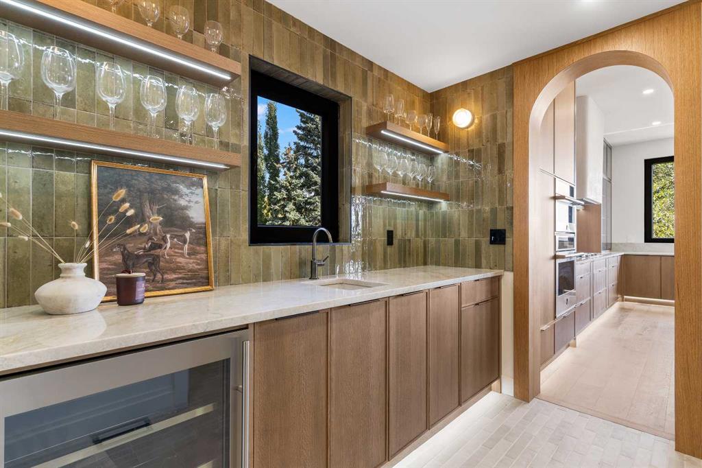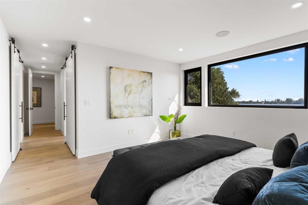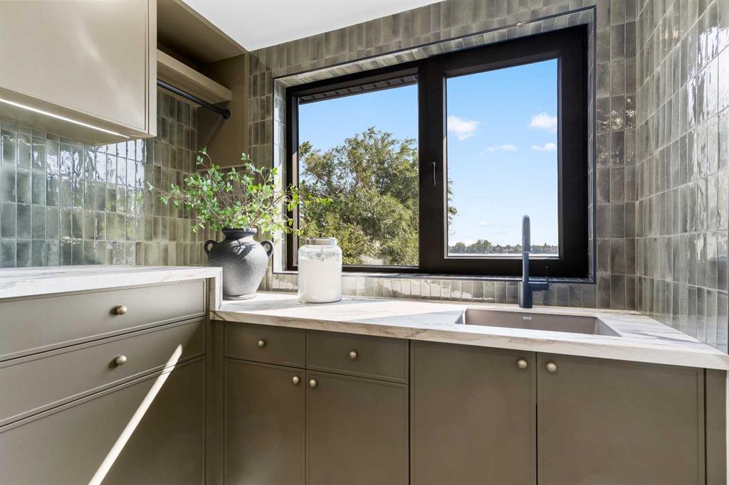 *Welcome to Lakeside Luxury on Chestermere Lake* With 4,482 sq. ft. of fully reimagined living space, this lakefront estate blends architectural sophistication with modern comfort on one of Chestermere Lake’s most exclusive stretches of shoreline. This complete renovation and design is an intricate remodel + extension, showcasing soaring 10’ ceilings, bespoke finishes, and walls of glass that capture sweeping water views. The foyer, framed by a 4 ft. Lux custom glass door, makes a bold first impression with a glass~encased home office and a see~through fireplace leading into the stunning living room. Floor~to~ceiling windows and European sliding doors create seamless flow to the outdoors, where a massive backyard, fire pit, and private dock invite year~round entertaining. At the heart of the home, the chef’s kitchen is a masterpiece ~ anchored by a Taj Mahal natural quartzite island, complemented by JennAir appliances, a butler’s pantry, and a limewashed plaster custom hood fan that compliments the natural stone backsplash. Brizo plumbing fixtures in champagne bronze + matte black, Lo & Co + Emtek hardware; and custom~designed lighting elevate every detail, while white oak cabinets and hardwood floors add warmth and texture throughout the home. A spacious mudroom that rivals the aesthetic of any competing luxury home, leads to the 4~car garage with a tucked~away workshop. The garage floor was transformed with a stunning, heated, metallic epoxy finish, providing both beauty and durability. LED sensors throughout the home create an unrivalled nighttime ambiance, and an exposed epoxy rear deck extends the entertaining space. Upstairs, a vaulted bonus room with the home’s original fireplace nods to its heritage, while a dual~desk workstation in the hallway adds functional elegance. Two secondary bedrooms and two larger master waterfront retreats capture lakeside serenity perfectly. The primary suite is pure indulgence, featuring a spa inspired ensuite with a steam shower, heated bench and floors, which flows seamlessly to a massive walk in closet with micro~shaker drawers and velvet encasements. Even the laundry room makes a statement, with classic black and white checkered flooring adding a charming and whimsical touch to this architectural marvel. This is more than a home ~ it’s a statement in design, craftsmanship, and lakefront living.