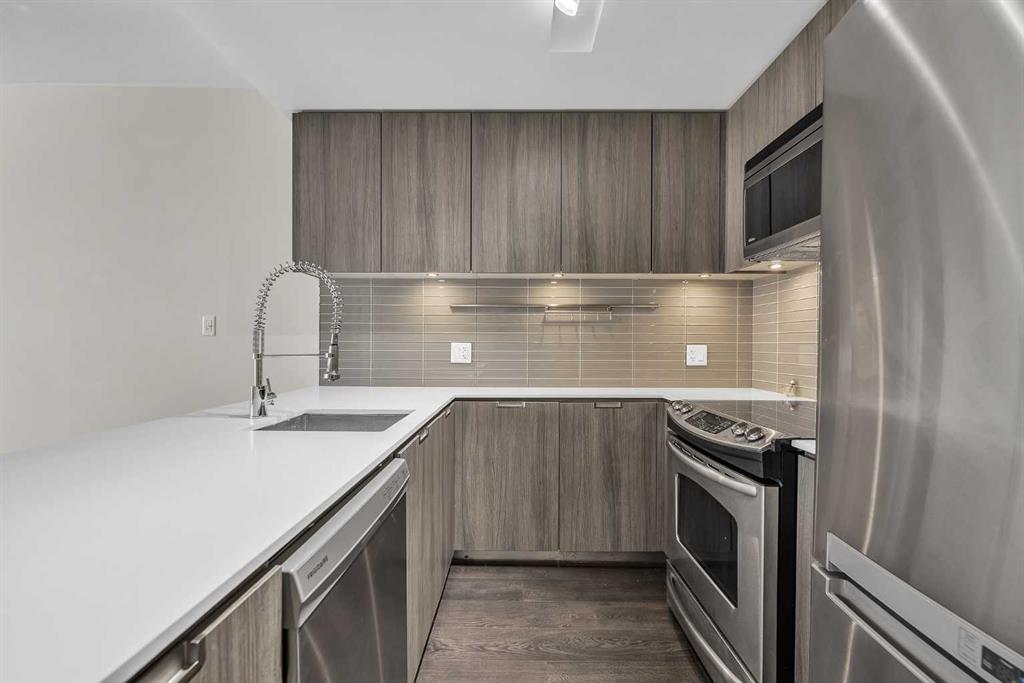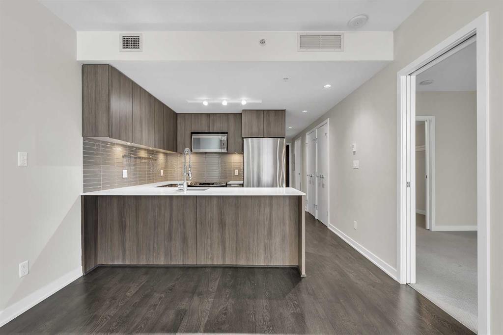 Welcome to Calla, a premier luxury residence in Calgary’s sought-after Beltline. This beautifully designed 1 bedroom + den unit offers the perfect balance of style, function, and downtown convenience. The open-concept layout is complemented by high-end finishes, modern cabinetry, and expansive windows that fill the space with natural light. The versatile den provides the ideal work-from-home setup or additional storage, making this unit perfect for professionals or investors alike. The spacious primary bedroom and well-appointed living area create a comfortable and inviting atmosphere, while the sleek kitchen is designed for both everyday living and entertaining. Residents of Calla enjoy exceptional amenities including a fully equipped fitness centre, yoga studio, steam room, and concierge service. Located just steps from Calgary’s best restaurants, cafés, shopping, and green spaces, this is urban living at its finest.