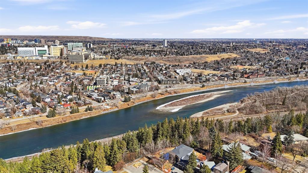 Homes like this don’t come up often in the inner city. This detached home in Spruce Cliff offers over 2,160 sq ft above grade across four bedrooms, three full bathrooms, and a fully developed basement — all on an oversized lot with a triple detached garage and landscaped west-facing backyard with poured concrete patio and perennials planted throughout. Main Floor - Engineered hardwood and twelve-foot ceilings set the tone throughout. The kitchen is built for the way you actually cook — full-height custom cabinetry, and a tiled backsplash, gas cooktop, oversized central island with 6 person seating. The living room anchors around a gas fireplace with featured tile surround, with sliding glass doors leading directly to the newly landscaped backyard. A fully tiled mudroom with built-in cabinetry and bench keeps arrivals organized. Upper Floor - The primary bedroom features a vaulted ceiling, an oversized walk-in closet with extensive built-ins, and a five-piece ensuite with heated tile floors, freestanding soaker tub, fully tiled standing shower, and quartz vanity. Two secondary bedrooms each have walk-in closets and share a well-appointed four-piece bathroom with private water closet. A dedicated laundry room with folding counter and sink rounds out the upper floor. Lower Level - A generous rec room with built-in wet bar and media nook anchors the basement. The fourth bedroom is currently set up as a private home gym — with two large closets and four-piece bathroom access, it converts effortlessly into a guest suite, office, or whatever your lifestyle calls for. Spruce Cliff puts you steps from parks, schools, the Bow River pathway, and the LRT — inner-city convenience without the density.