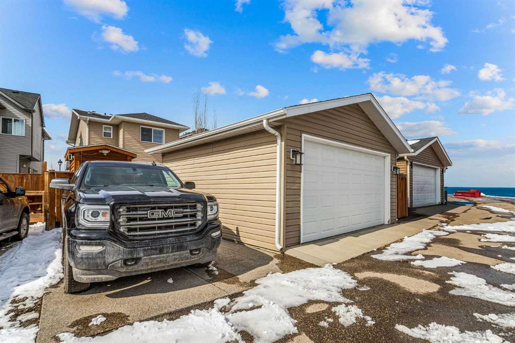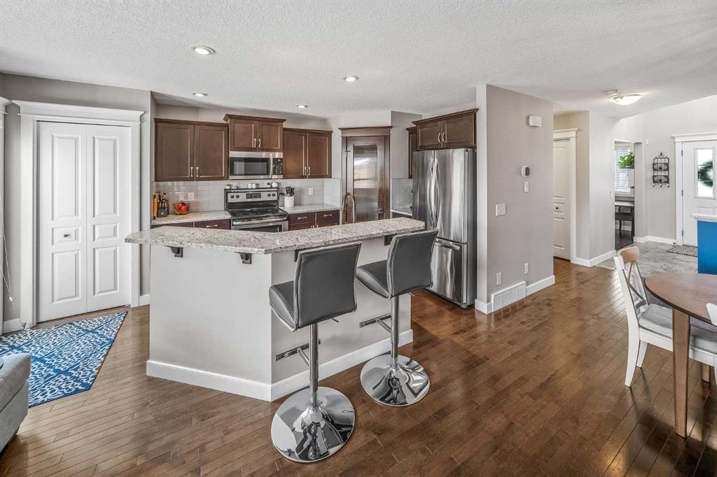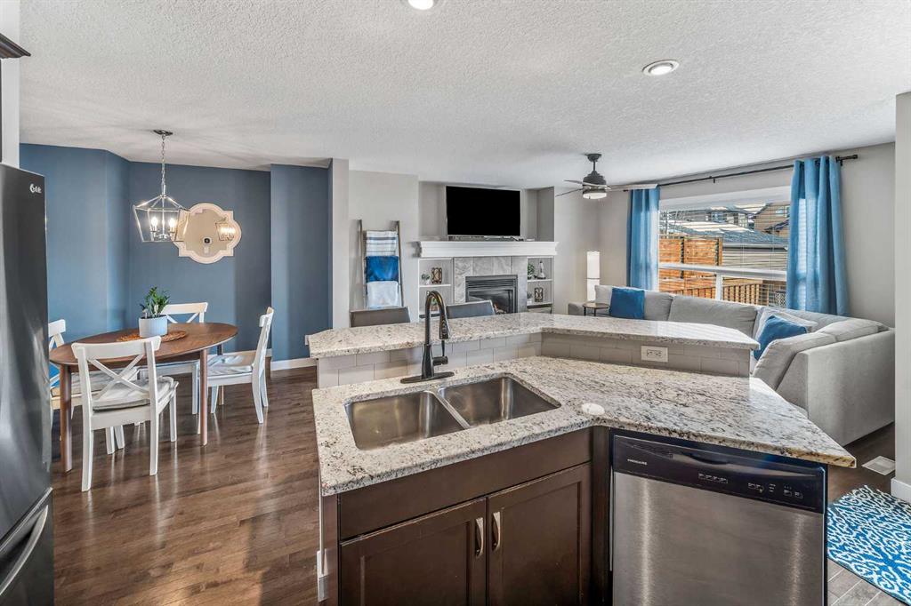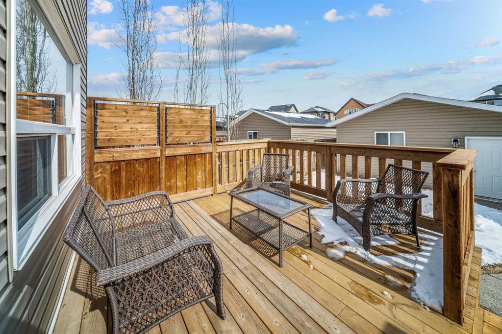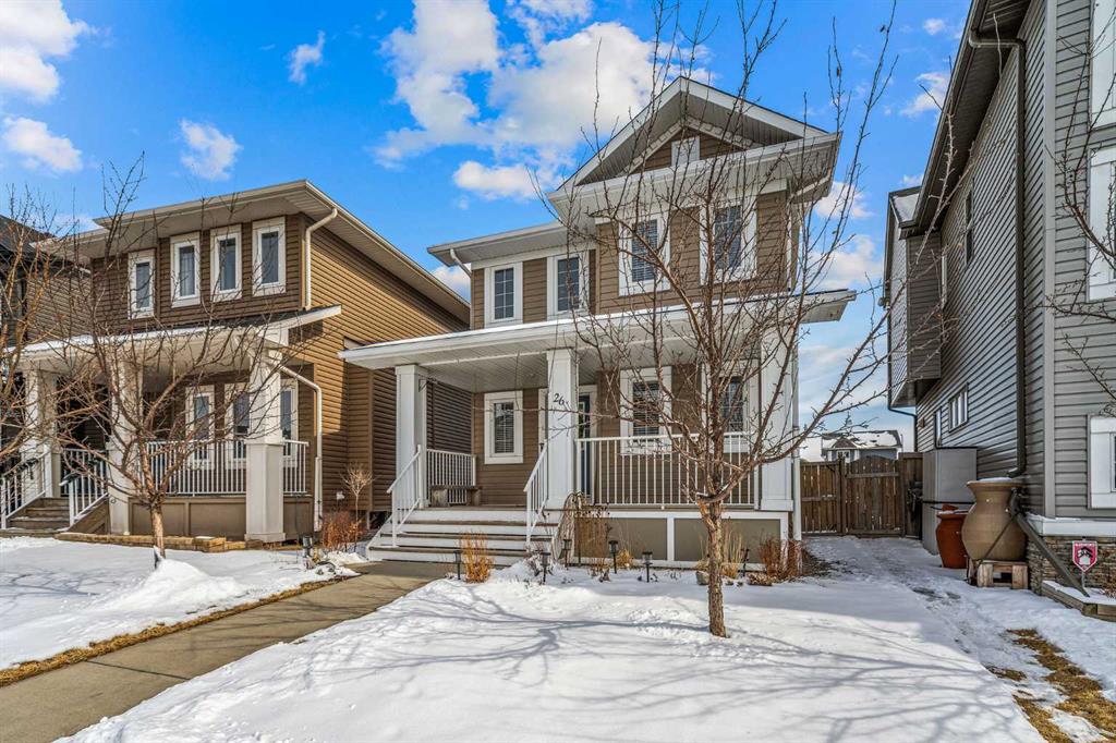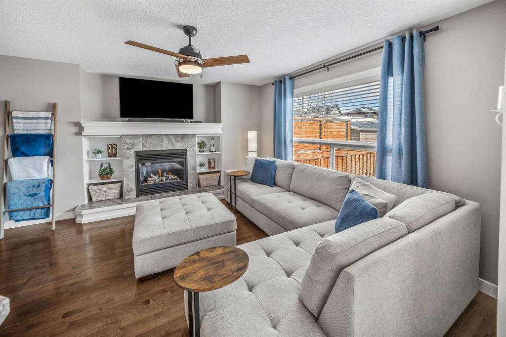 OPEN HOUSE SAT & SUN APRIL 11th & 12th 1:30-3:P30PM! !! STUNNING HOME IN DESIRABLE RAVENSWOOD | CENTRAL AC, DOUBLE GARAGE, PLUS 3RD CAR PARKING! Welcome to this beautifully maintained open-concept two-storey home, ideally situated on a quiet street in the highly sought-after community of Ravenswood. Flooded with natural light, this home offers a perfect blend of comfort, style, and functionality for modern living. The main floor features rich hardwood flooring, a versatile den ideal for a home office, convenient main floor laundry, and a stylish powder room. The heart of the home is the kitchen, complete with richly stained cabinetry, a stainless steel appliance package, and thick stone countertops that extend seamlessly onto the island - perfect for entertaining. The inviting family room showcases a cozy fireplace and flows effortlessly into the dining area, creating a warm and welcoming space. Upstairs, you’ll find three spacious bedrooms, including a bright primary retreat with a walk-in closet and private ensuite bath. An additional full bathroom completes the upper level. Step outside to enjoy your private backyard, featuring a newly extended deck - ideal for relaxing or hosting guests. The double garage is great for those looking for shop space, offering a 240V plug for tools or electric vehicle charging, along with a natural gas line. An additional third parking stall adds even more convenience. The undeveloped basement provides excellent future potential, with mechanical thoughtfully tucked away and rough-in plumbing already in place for a future bathroom. Located just steps from parks, walking paths, schools, and a wide range of amenities, this home offers exceptional value in a family-friendly community. Central AC, fully landscaped, Sunny SE facing backyard, and much more A fantastic opportunity you won’t want to miss!